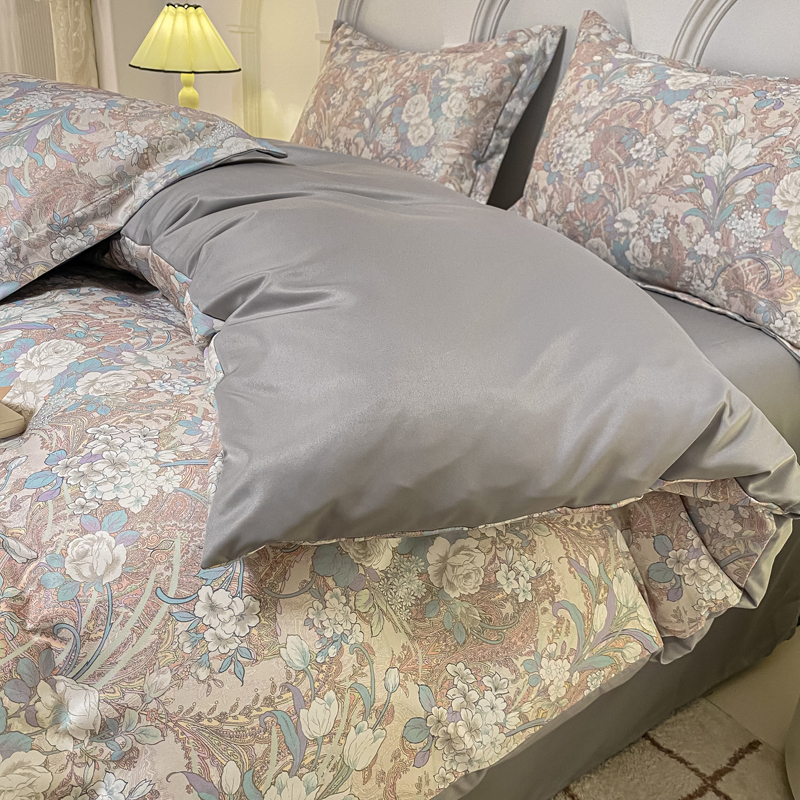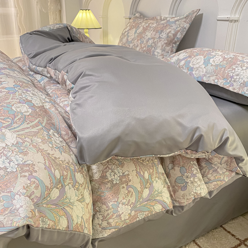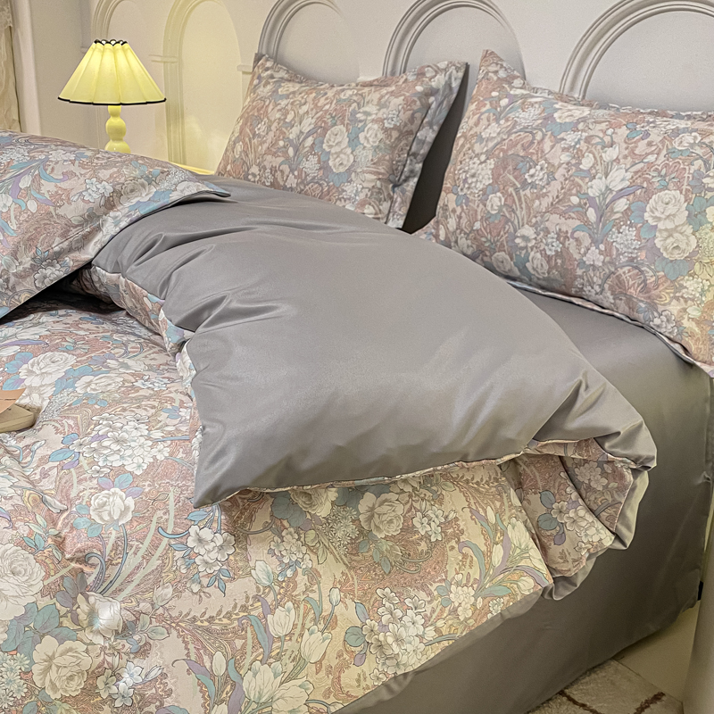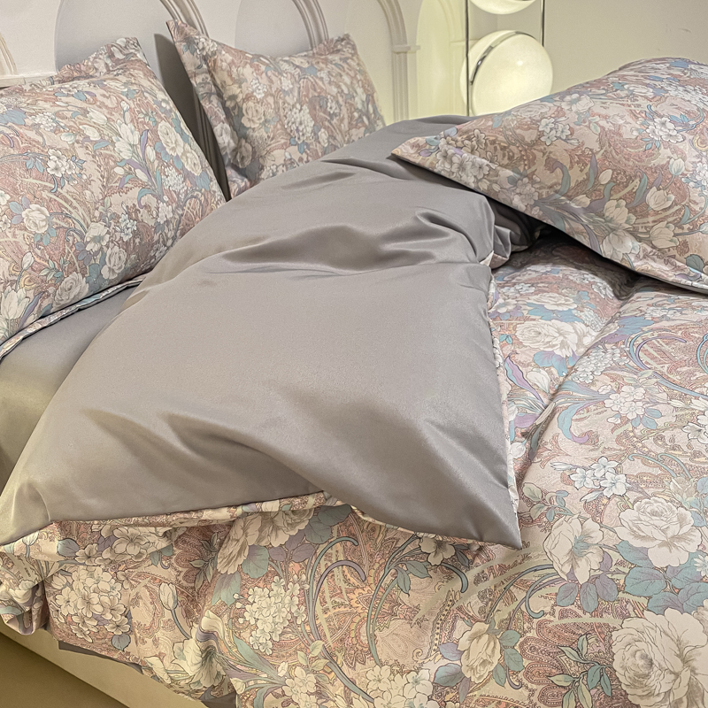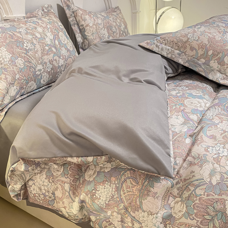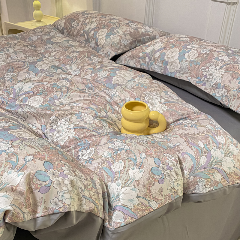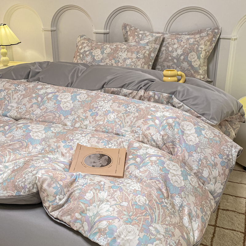 商品名称:悦织湾2025新款冰丝印花四件套美式数码轻奢时尚学生三件套宿舍单双人床上用品4件套 娇之恋