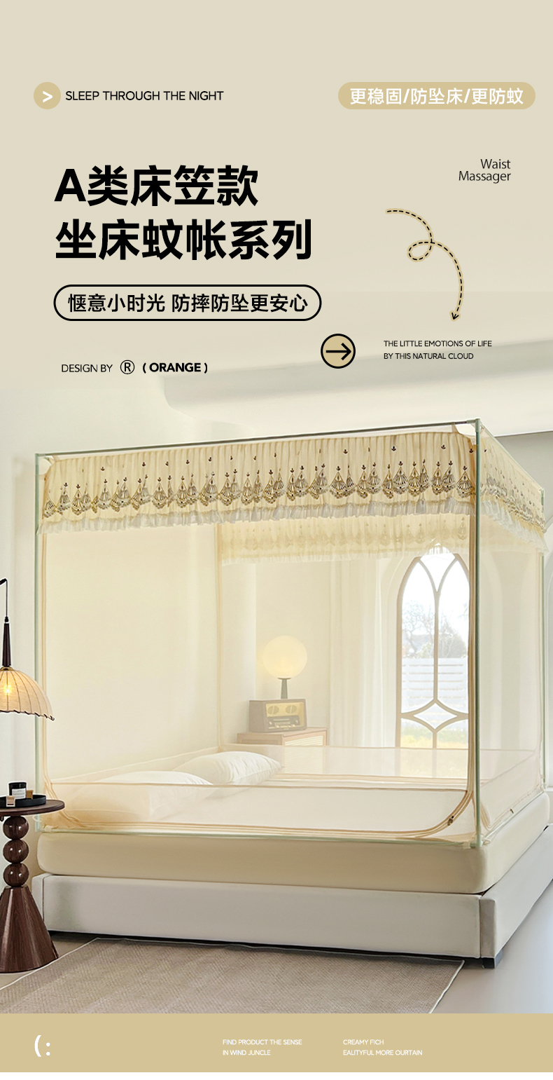 (总)伊而梦蚊帐 2025新款908款U型门蕾丝三开门坐床蚊帐