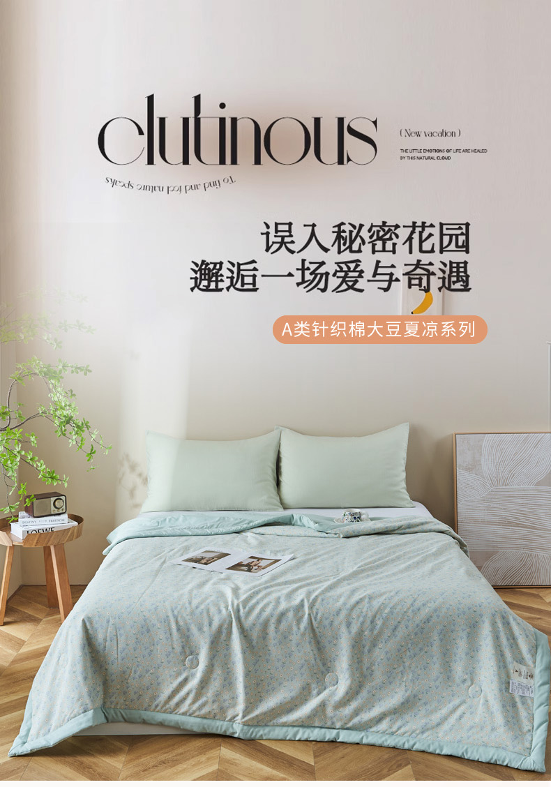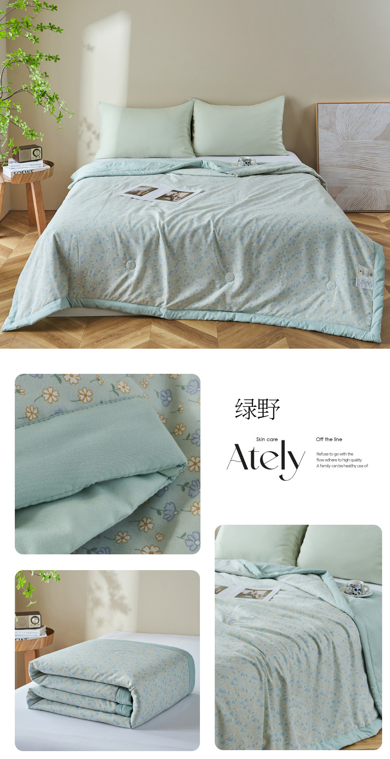 商品名称:森林人 2025新款A类针织棉大豆夏凉被 绿野