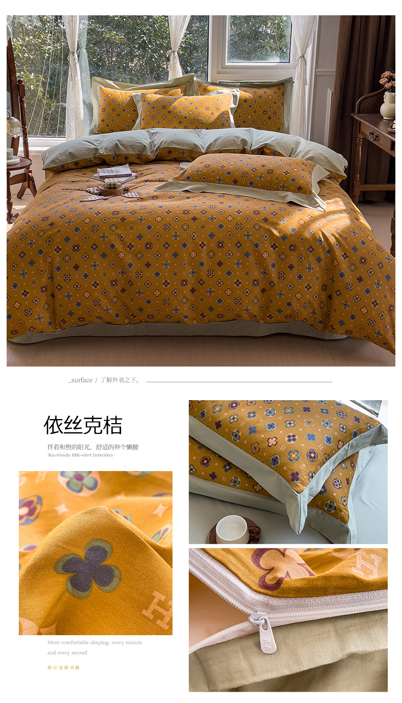 (总)KA家纺 2025新款秋冬轻奢高克重双拼角牛奶绒四件套,玫瑰之吻,繁花似锦,复古粉黛,鎏金岁月,木棉花,山奈,优雅生活,虞美人