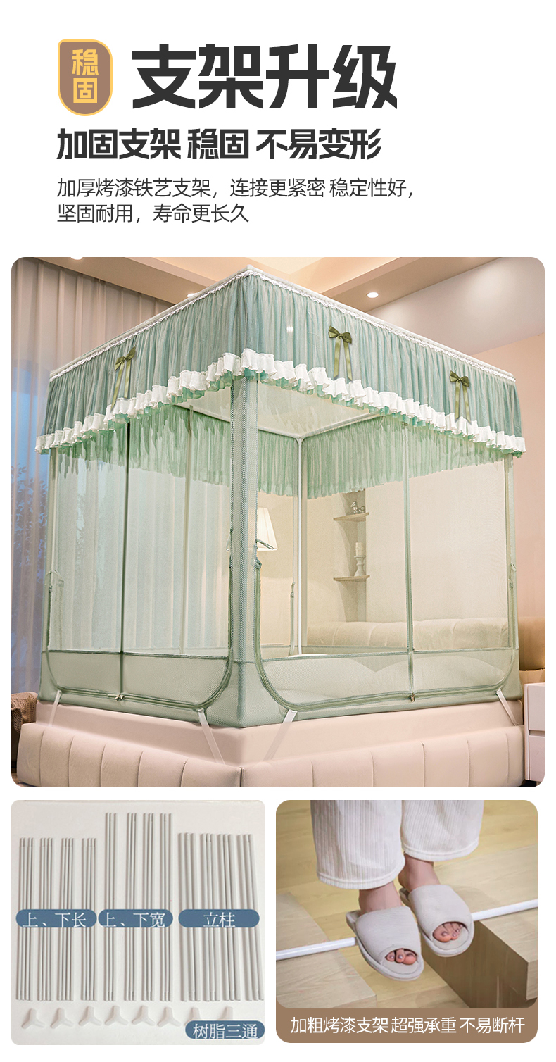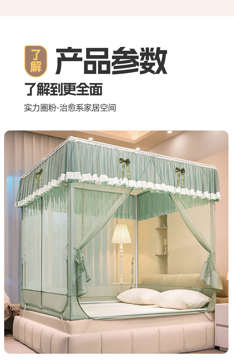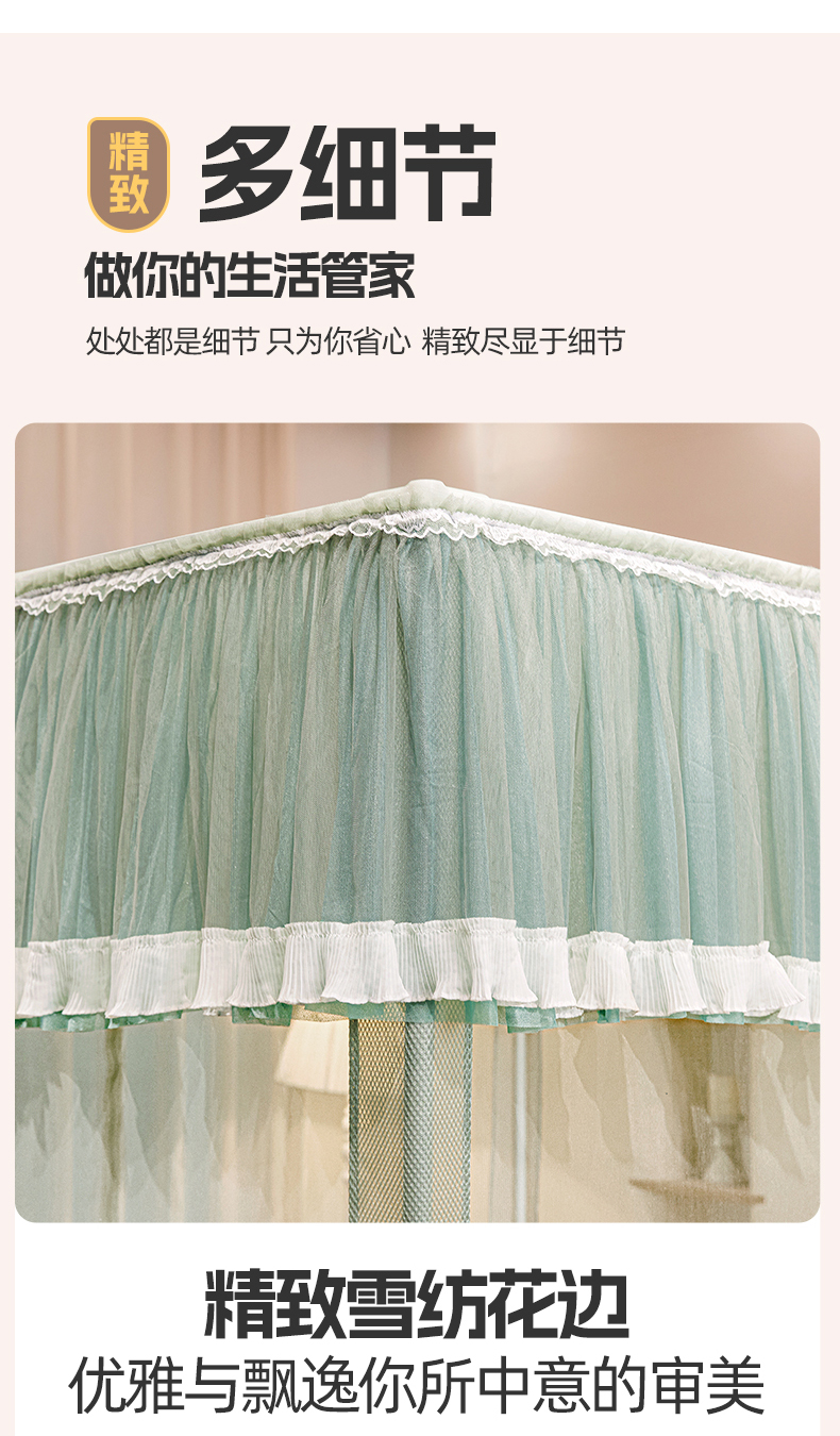 当前位置: 91家纺网 > 商品网购 > 床上用品 > 蚊帐 > 坐床式蚊帐 > 夏彩 2025新款浪漫唯美T+U大空间坐床防摔蚊帐-88608 88608T-薄荷绿
