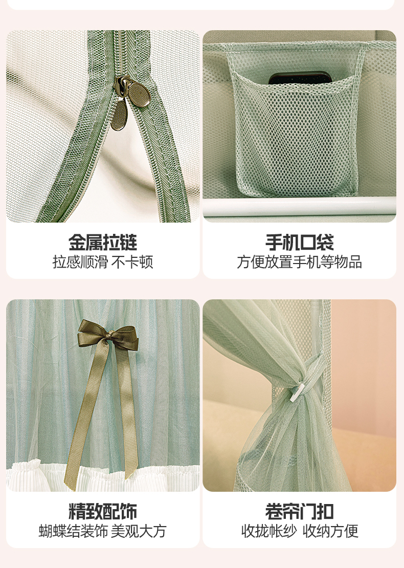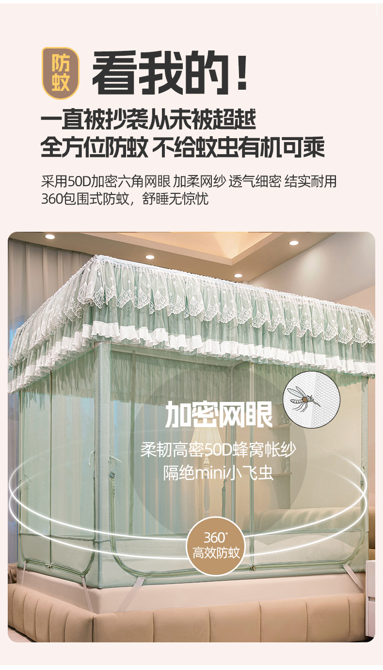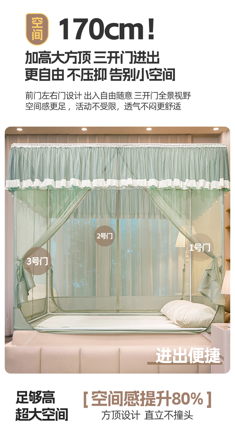 当前位置: 91家纺网 > 商品网购 > 床上用品 > 蚊帐 > 坐床式蚊帐 > 夏彩 2025新款浪漫唯美T+U大空间坐床防摔蚊帐-88608 88608T-薄荷绿
