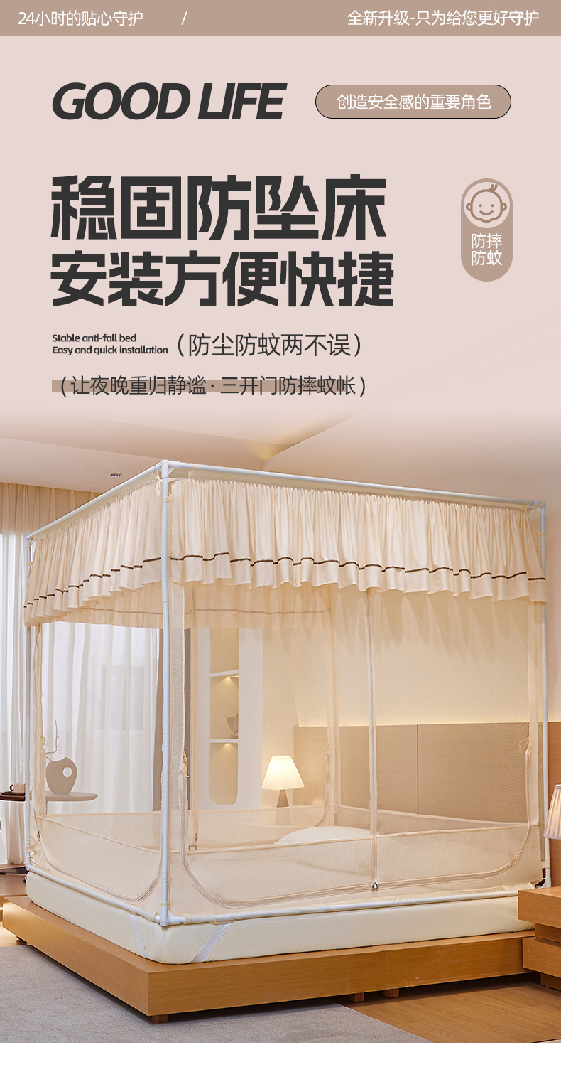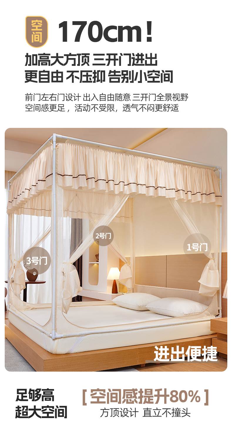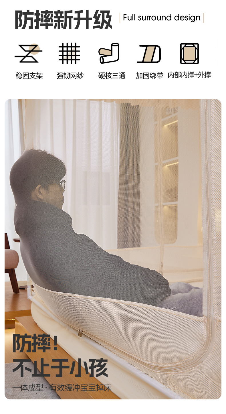 当前位置: 91家纺网 > 商品网购 > 床上用品 > 蚊帐 > 坐床式蚊帐 > 夏彩 2025新款浪漫唯美T+U床笠式坐床外穿防摔蚊帐-88610 886610杏仁黄