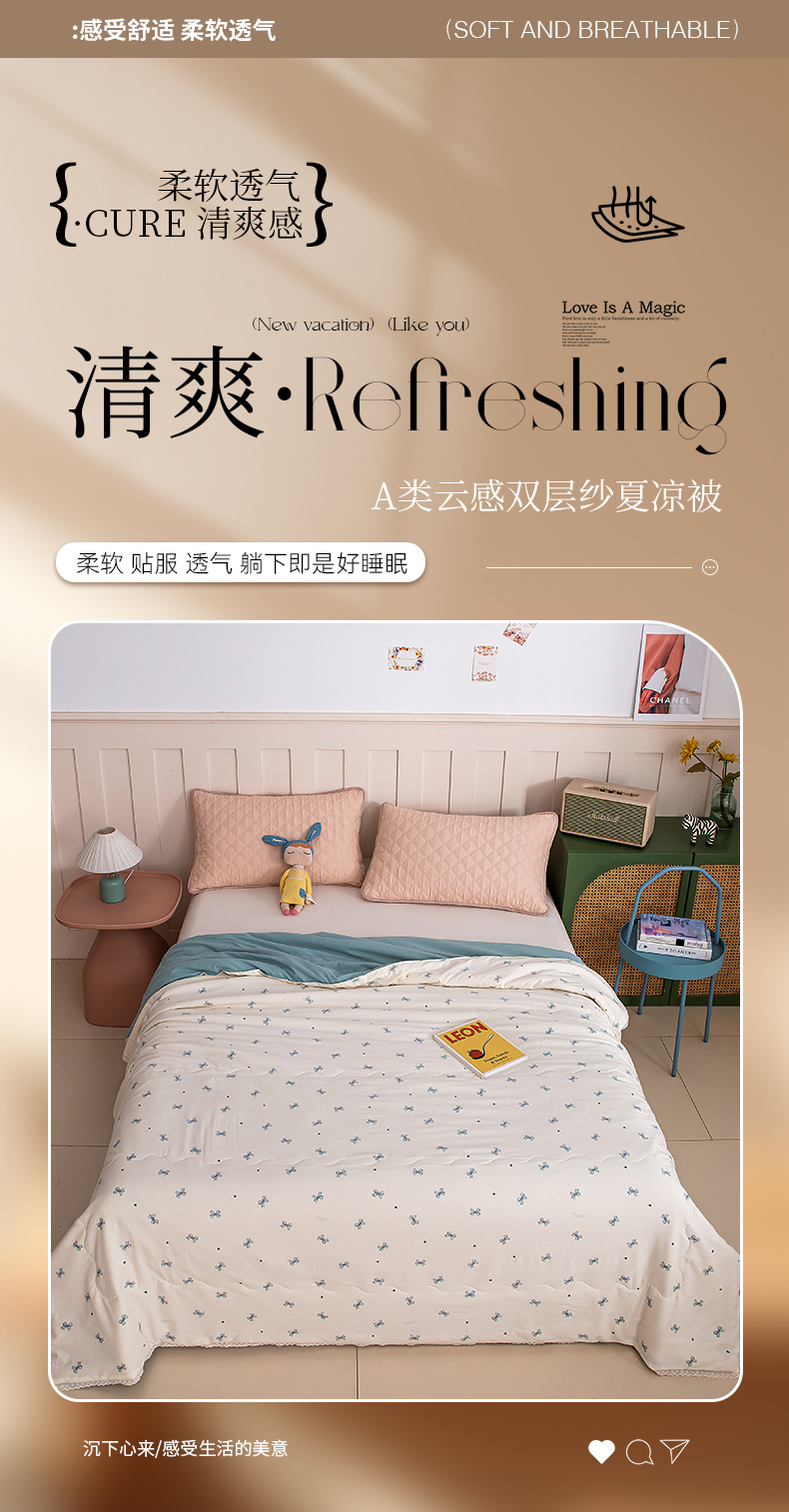 (总)艺菲阁家纺 2025新款花边款小碎花A类云感双层纱夏被,春风十里,海像深林,偏偏宠爱,倾心-米,人间草木,森田野园,相思-粉,相思-蓝