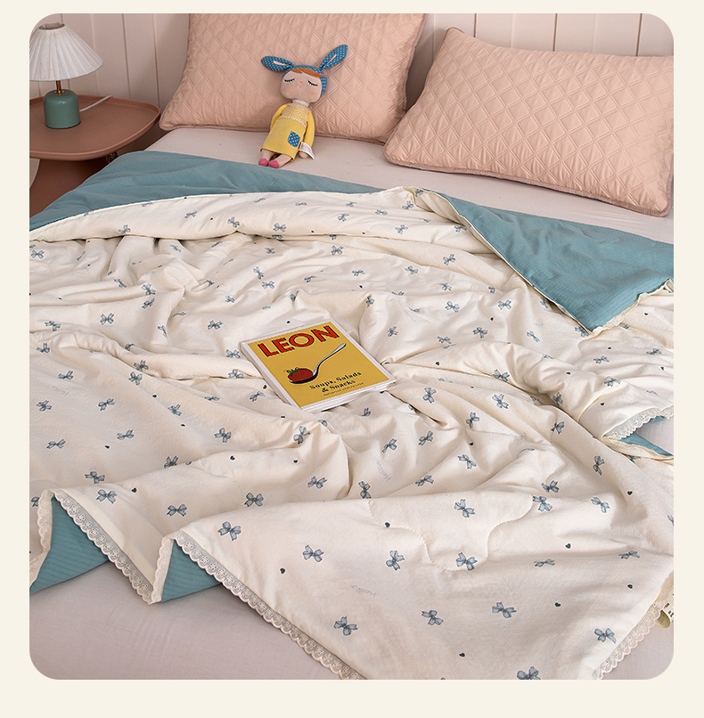 艺菲阁家纺 2025新款花边款小碎花A类云感双层纱夏被 相思-蓝