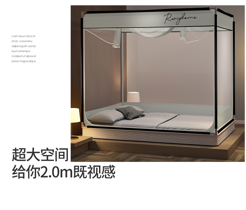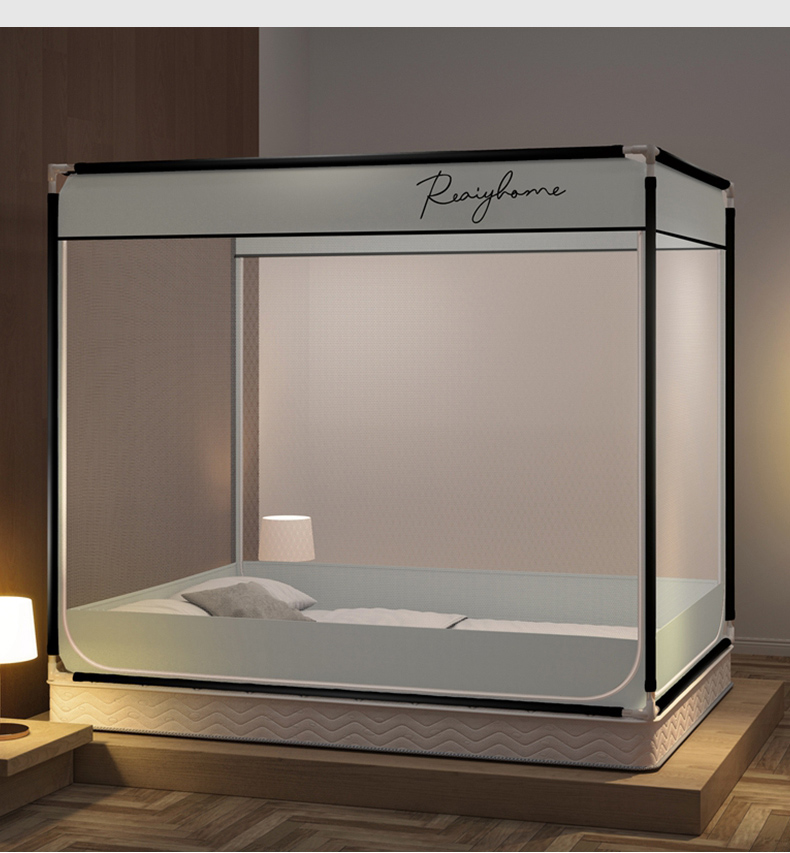 (总)飞轮海蚊帐 2023新款三开门落地遮光蚊帐-L-93,高级灰,芥末绿,奶油黄,香槟