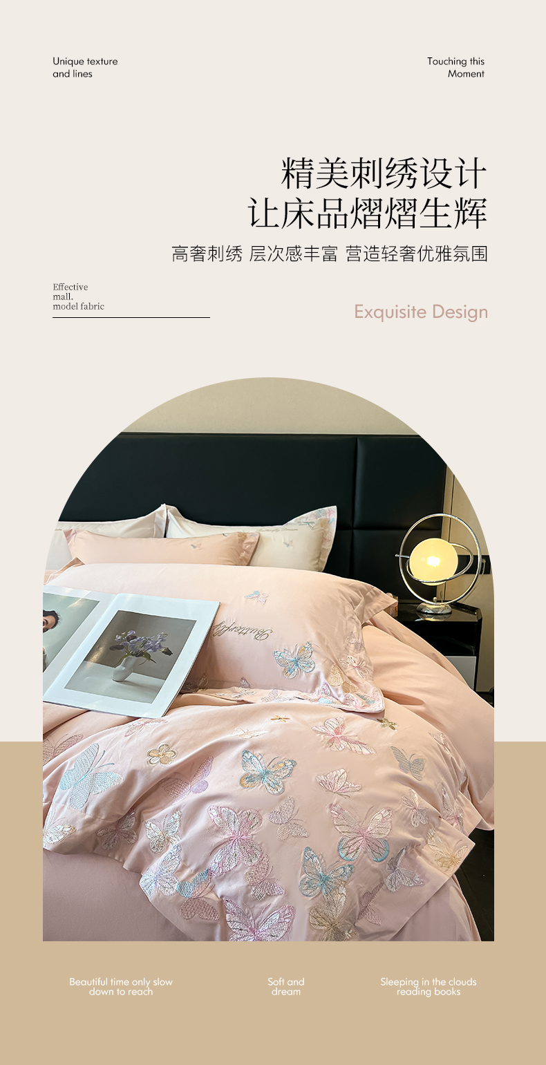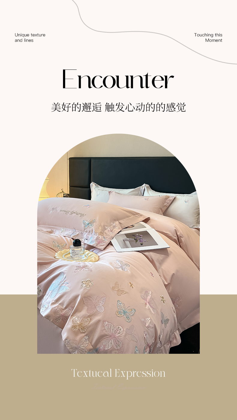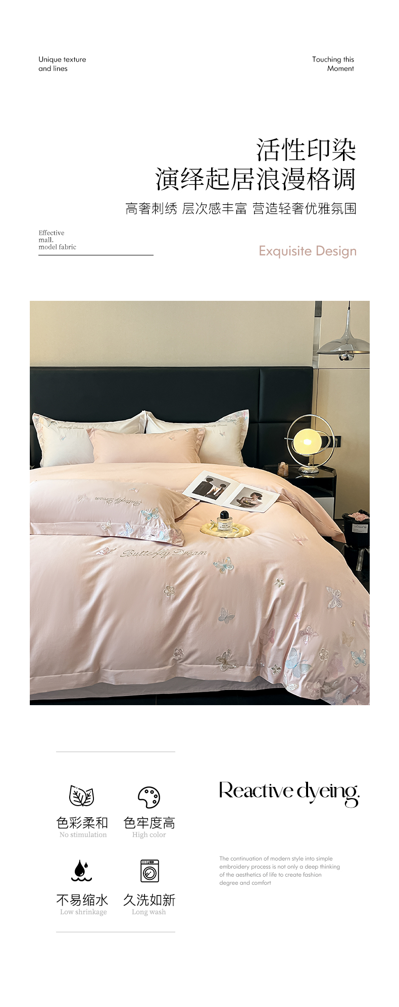 商品名称:理想家家纺 2025新款亲肤舒适纯棉刺绣四件套-蝶影流光 蝶影流光-粉
