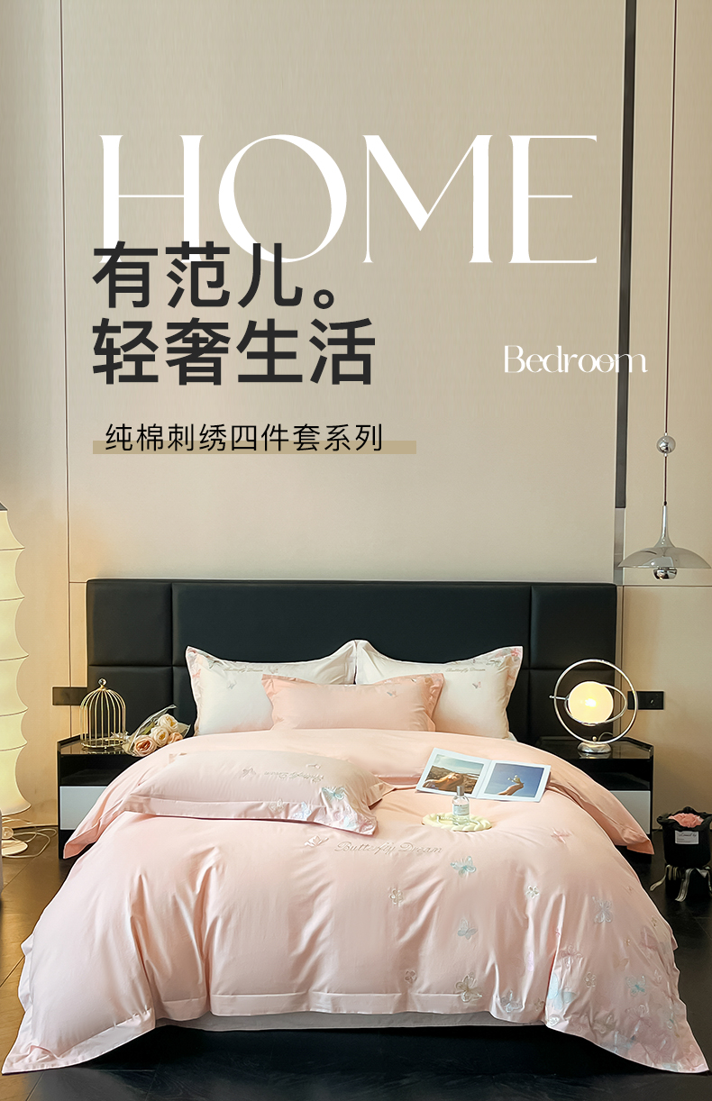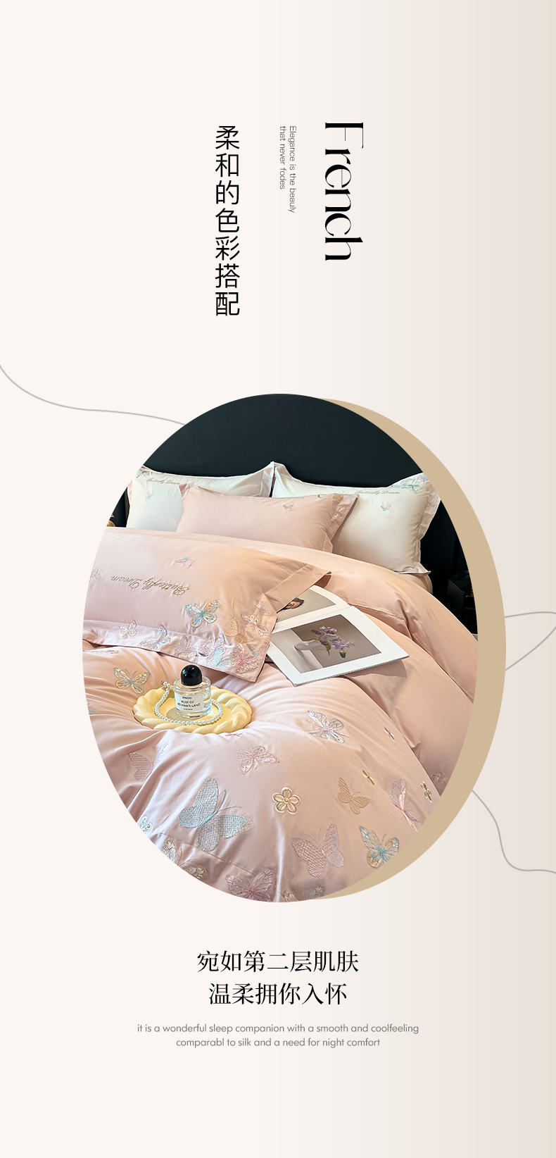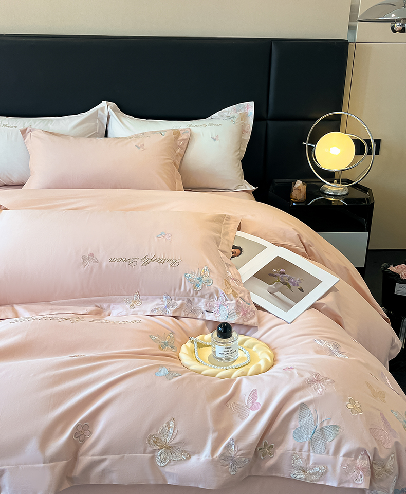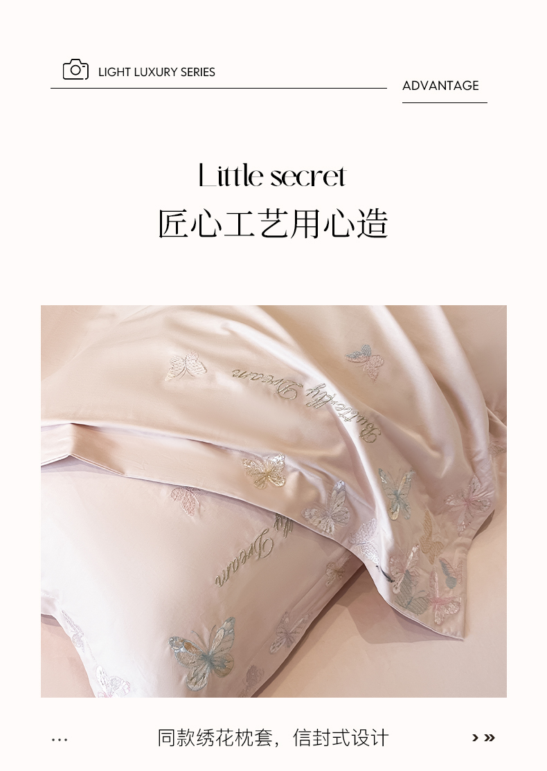 商品名称:理想家家纺 2025新款亲肤舒适纯棉刺绣四件套-蝶影流光 蝶影流光-粉