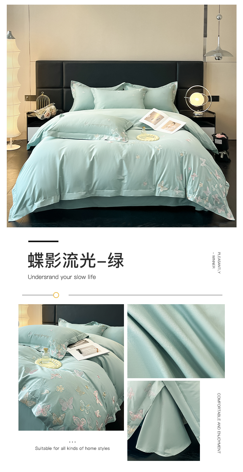 (总)理想家家纺 理想家家纺 2025新款云朵棉水洗真丝刺绣四件套,翩羽白,翩羽粉,翩羽蓝,翩羽绿,翩羽紫
