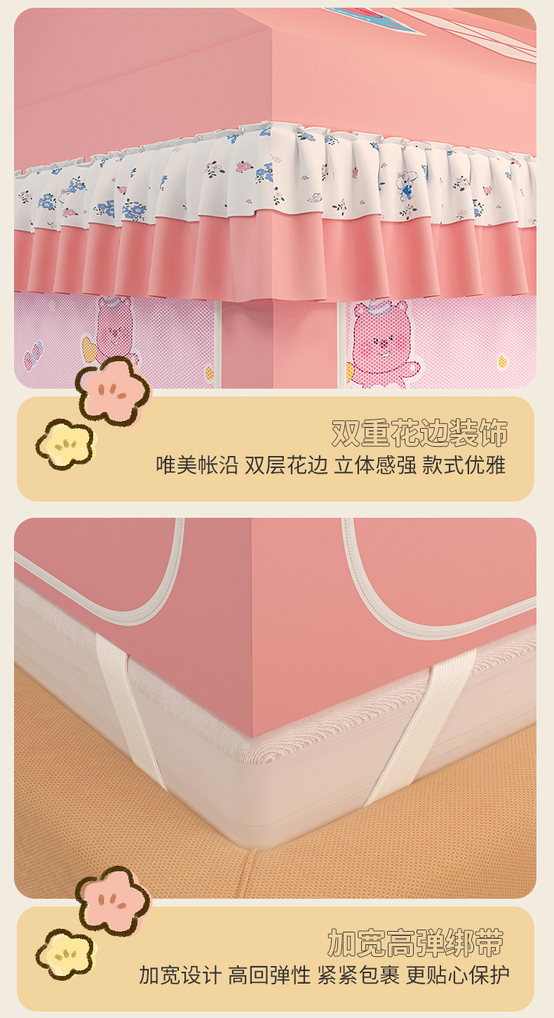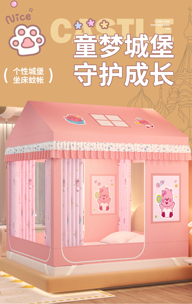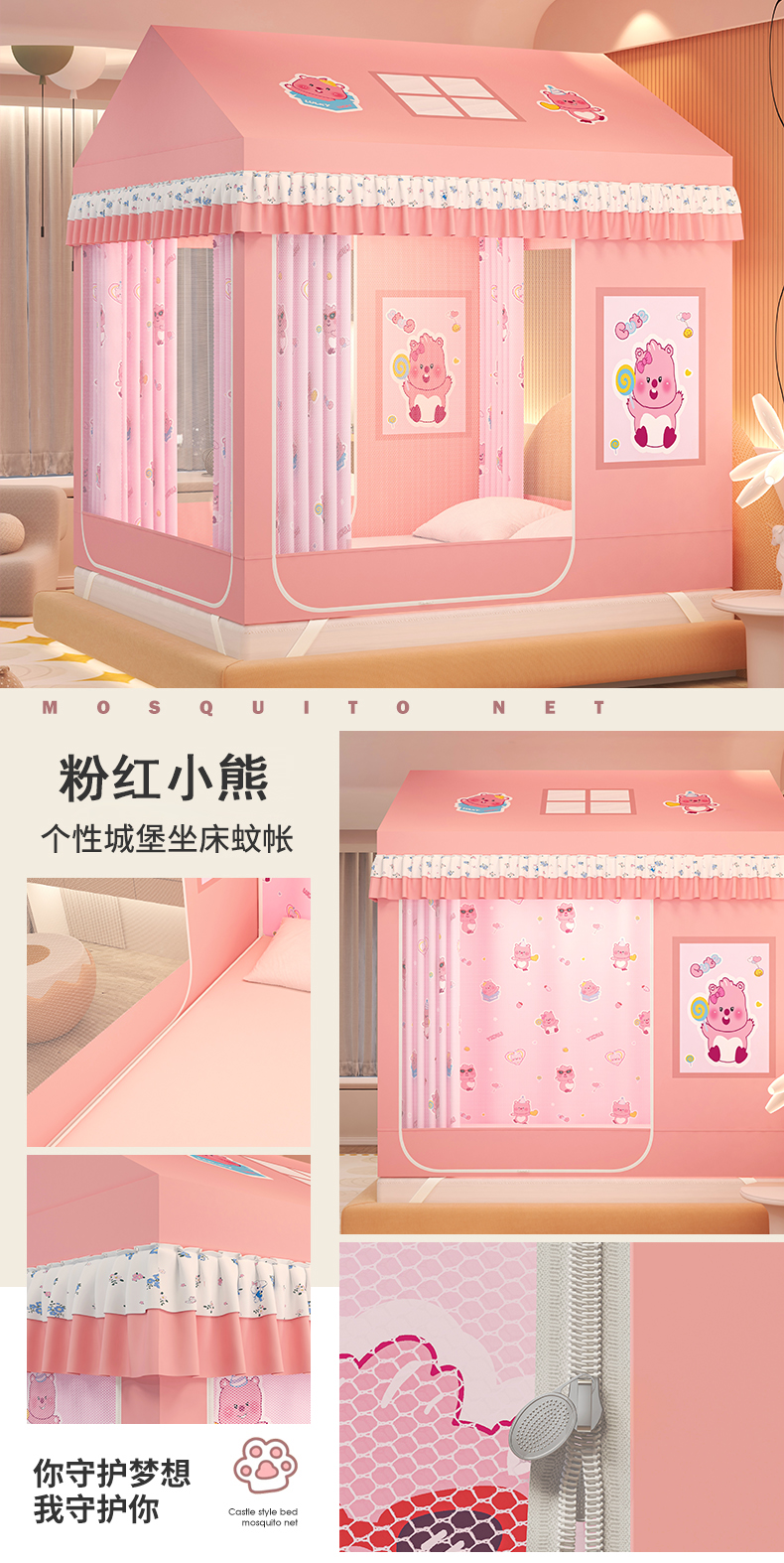 当前位置: 91家纺网 > 商品网购 > 床上用品 > 蚊帐 > 坐床式蚊帐 > 迪凡保罗蚊帐 2025新款2505城堡款房型遮光防摔坐床蚊帐 粉红小熊