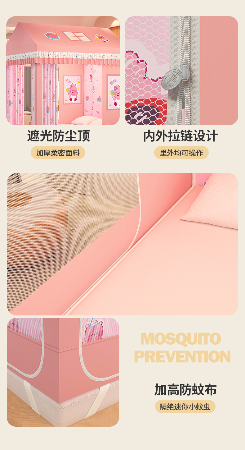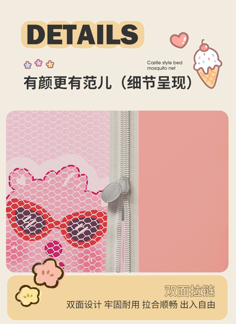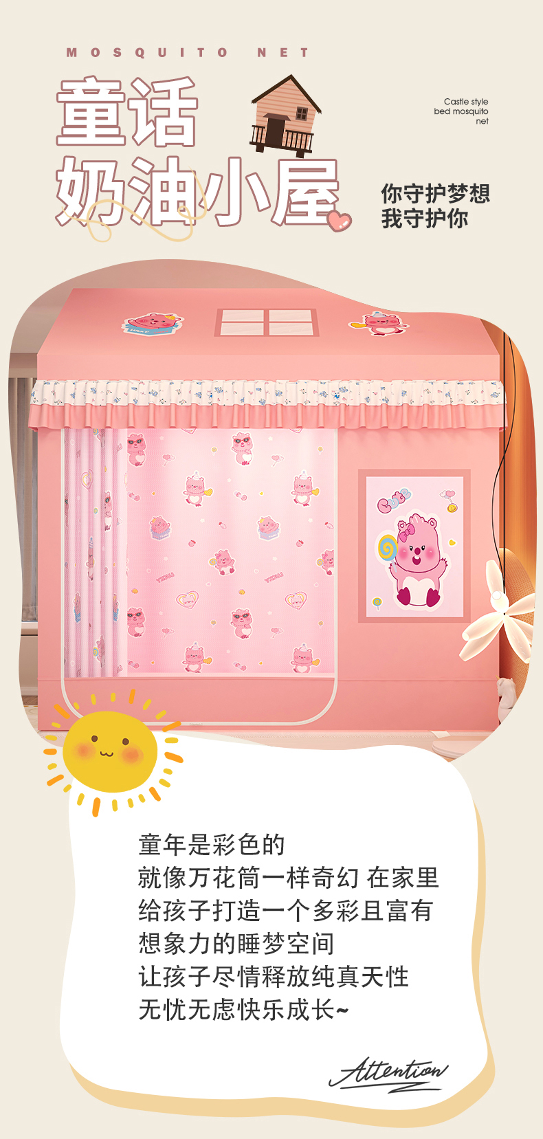 当前位置: 91家纺网 > 商品网购 > 床上用品 > 蚊帐 > 坐床式蚊帐 > 迪凡保罗蚊帐 2025新款2505城堡款房型遮光防摔坐床蚊帐 粉红小熊