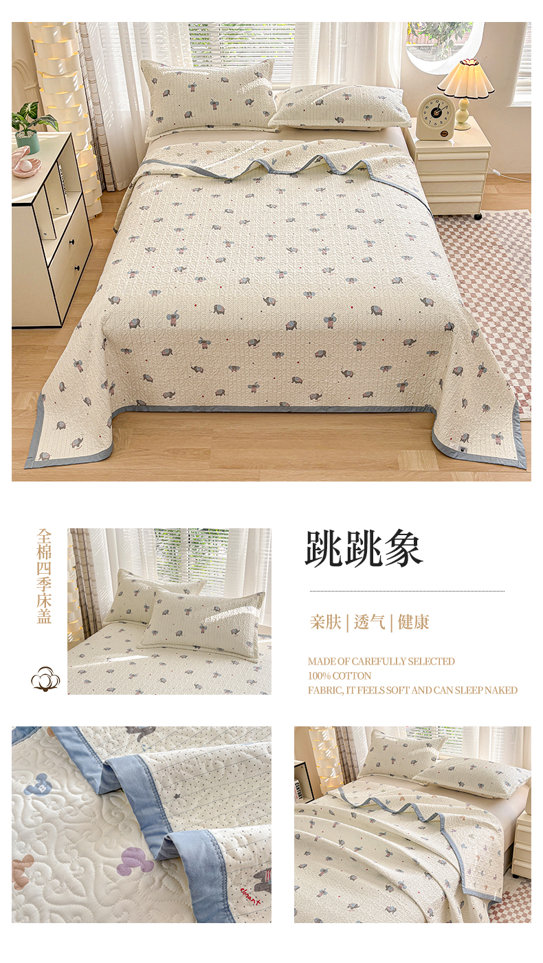 梦精灵2025新款40支13372印花全棉床盖软凉席夏被纯棉床单枕套四季通用跳跳象