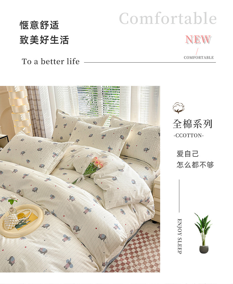 • 91家纺网 家纺一手货源 找家纺 梦精灵2025新款40支13372印花全棉床盖软凉席夏被纯棉床单枕套四季通用跳跳象