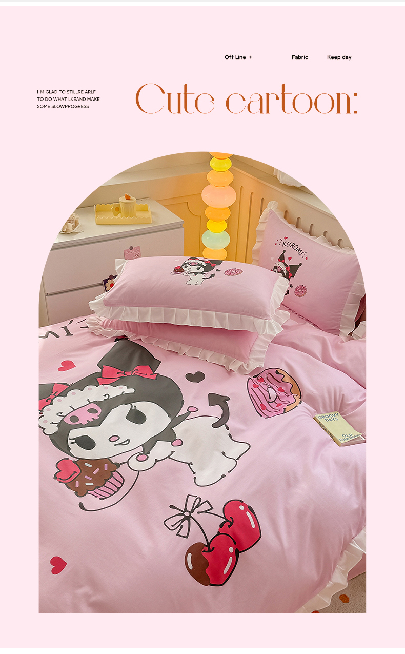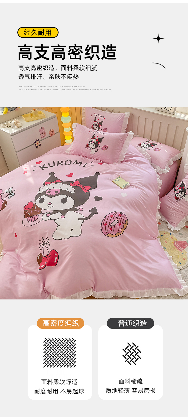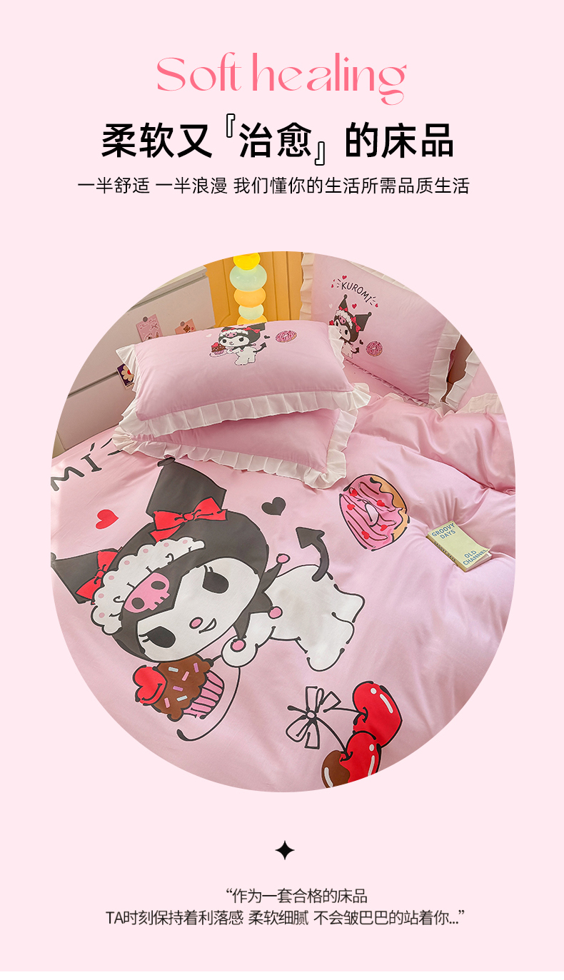当前位置: 91家纺网 > 商品网购 > 床品套件 > 四件套 > 全棉普通四件套 > 玉元坊 2025新款三丽鸥系列数码印花纯棉全棉床裙三件套四件套-花边款 花边款-美味库洛米