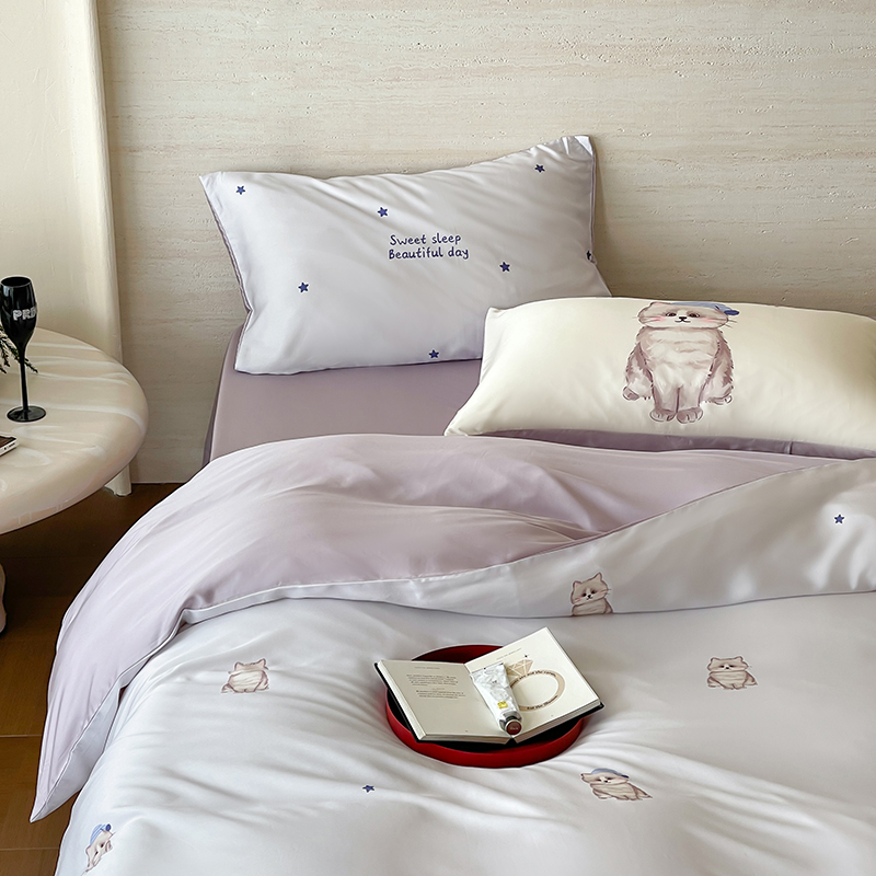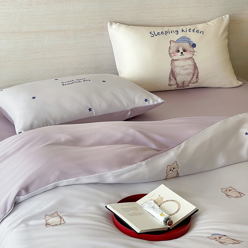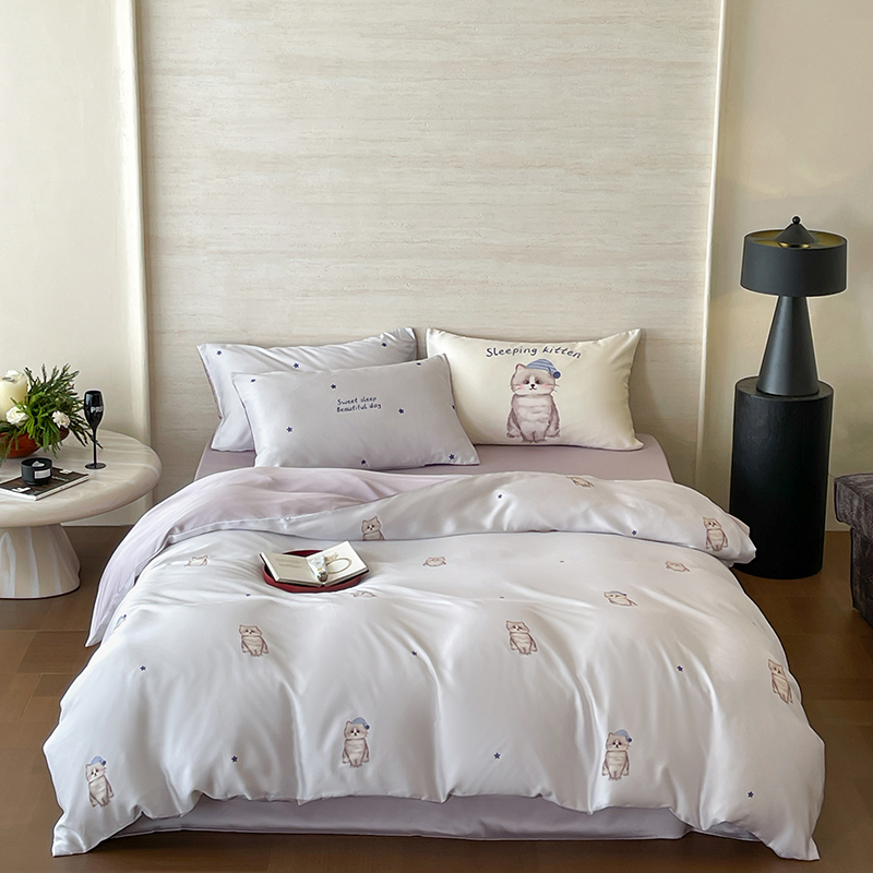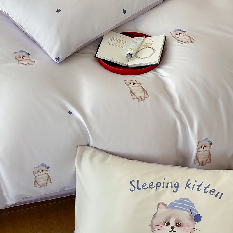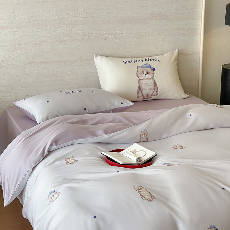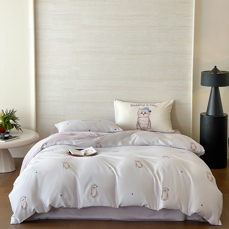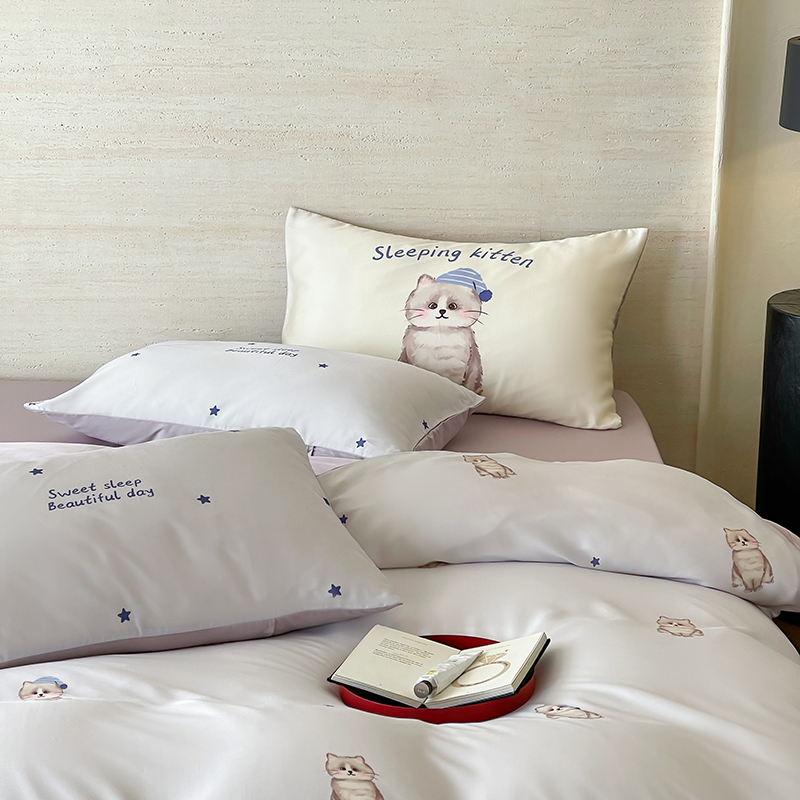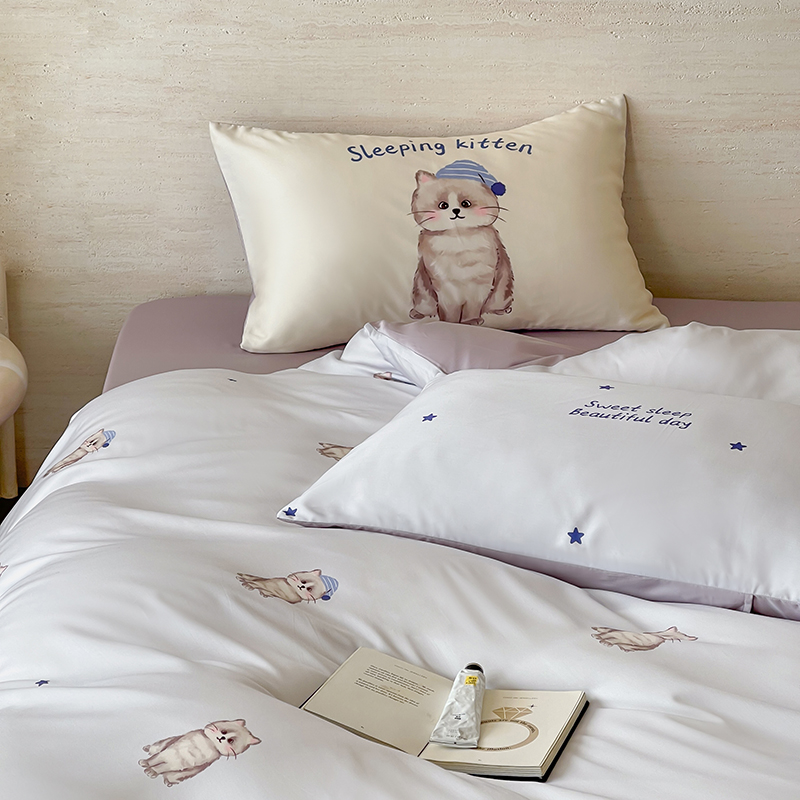 商品名称:(总)赫帛 2025新款60支天丝四件套-晚安小猫