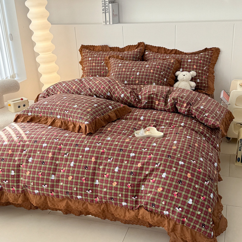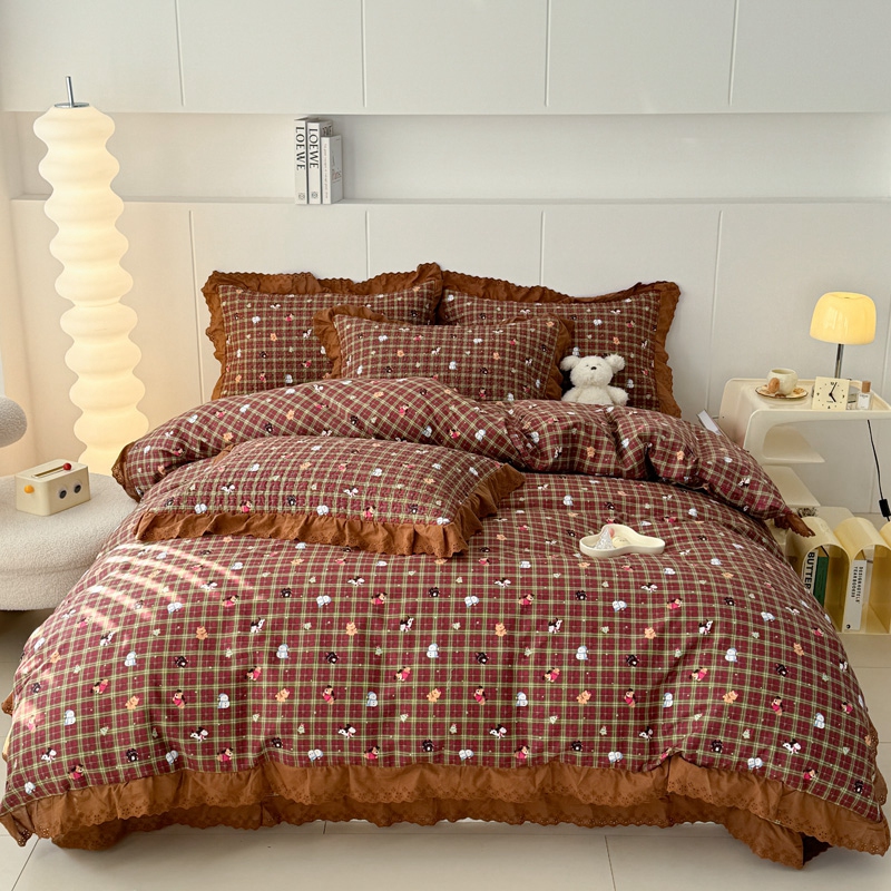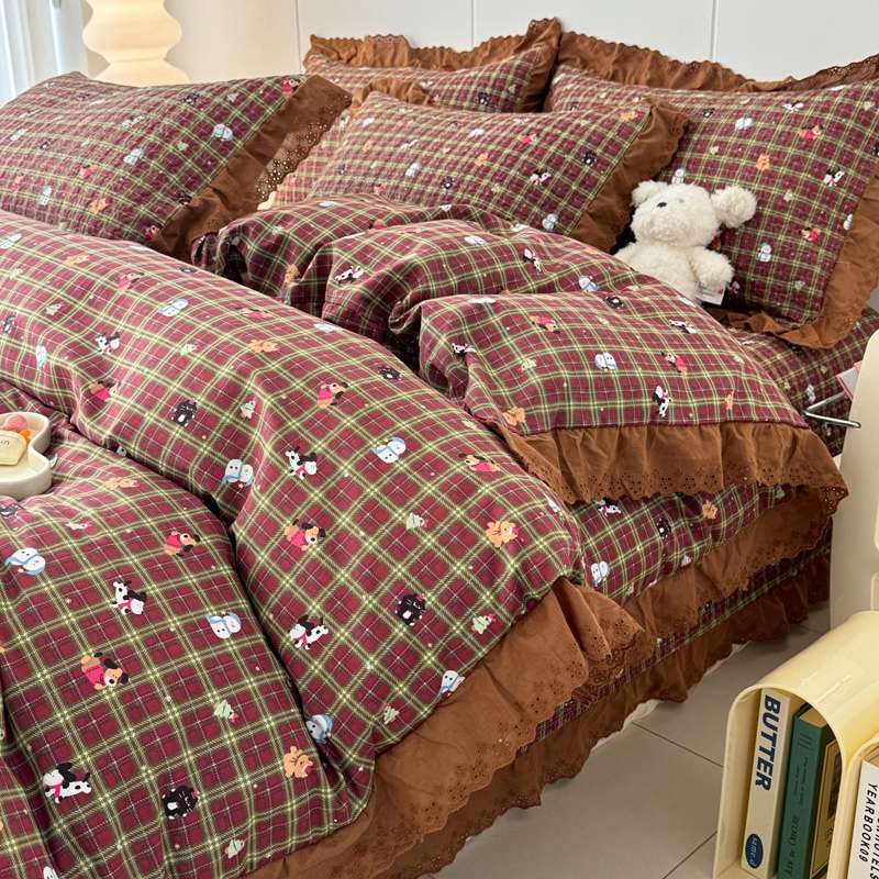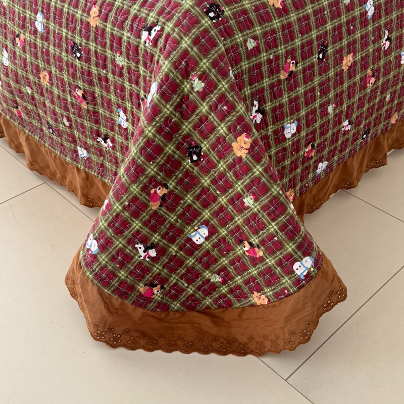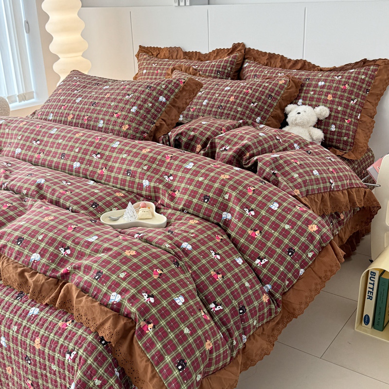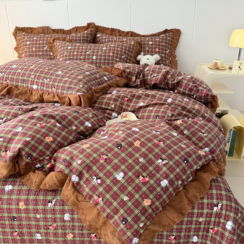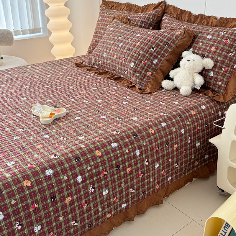 添越 2024小清新韩版蕾丝款花边纯棉夹棉床盖三件套全棉爱心熊-蕾丝款,爱心熊-蕾丝款