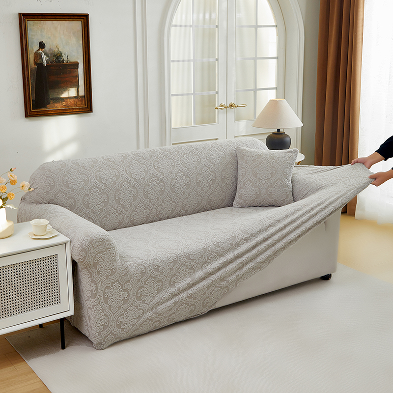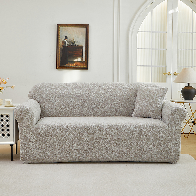 商品名称:逐日沙发套 2025新款提花绒沙发套-欧艺 浅灰