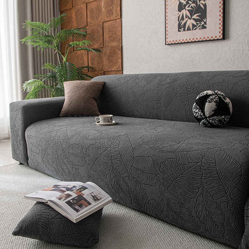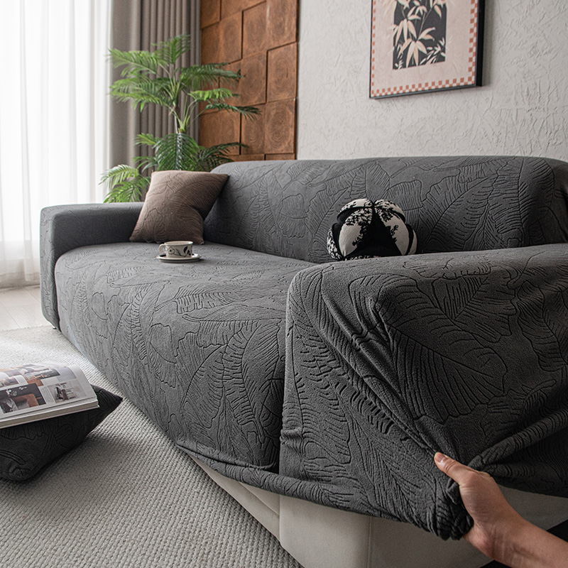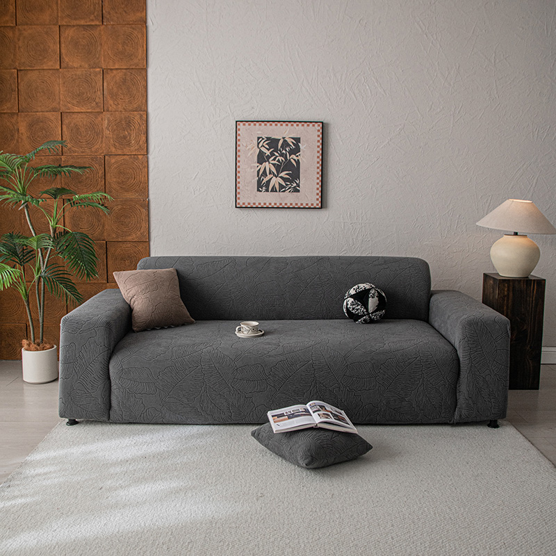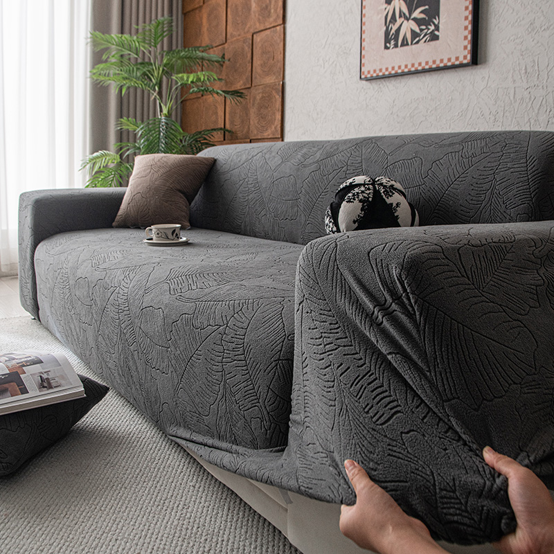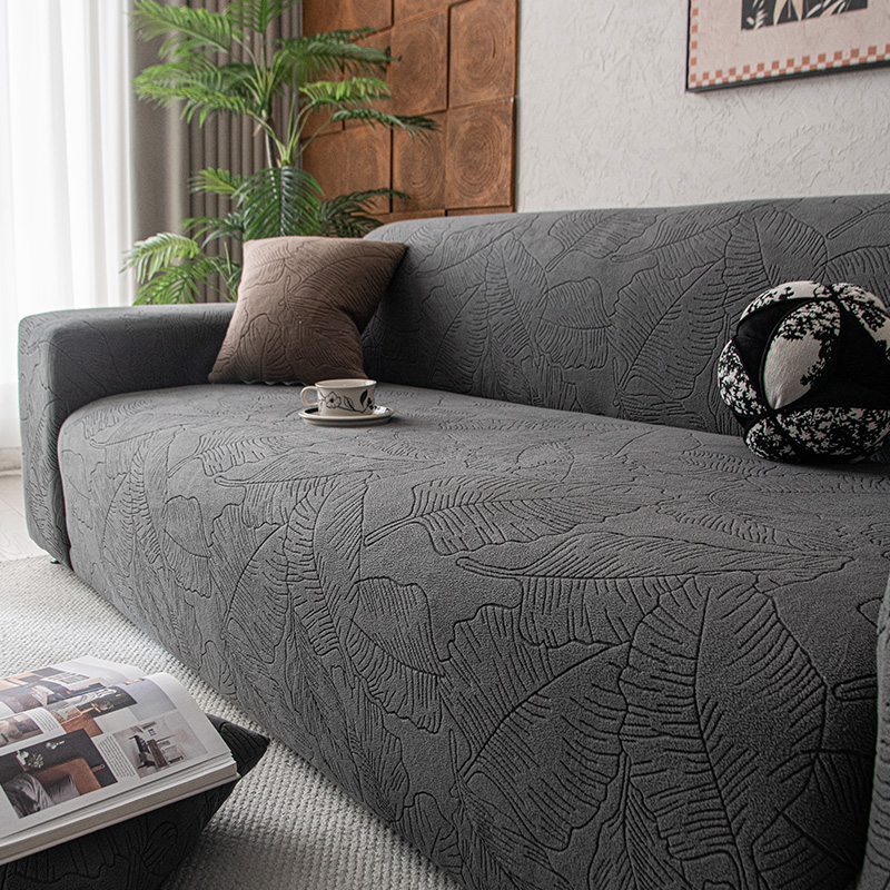 商品名称:逐日沙发套 2025新款提花绒沙发套-叶沙 深灰