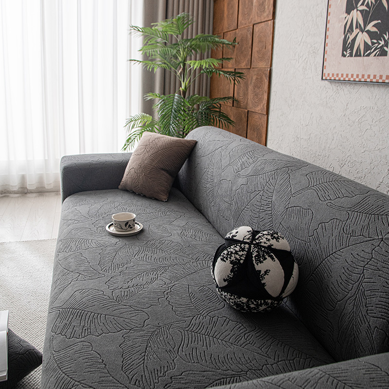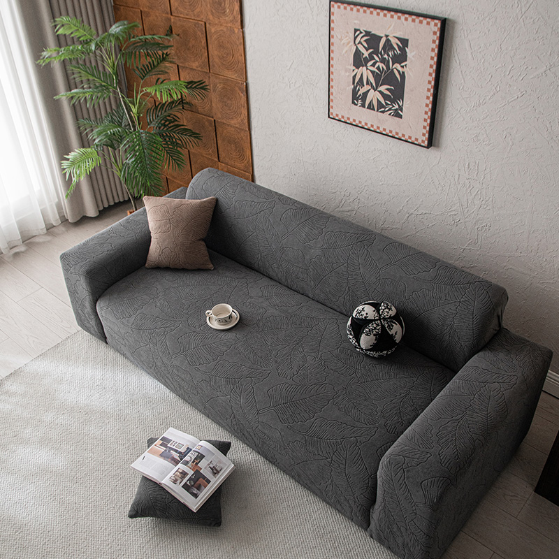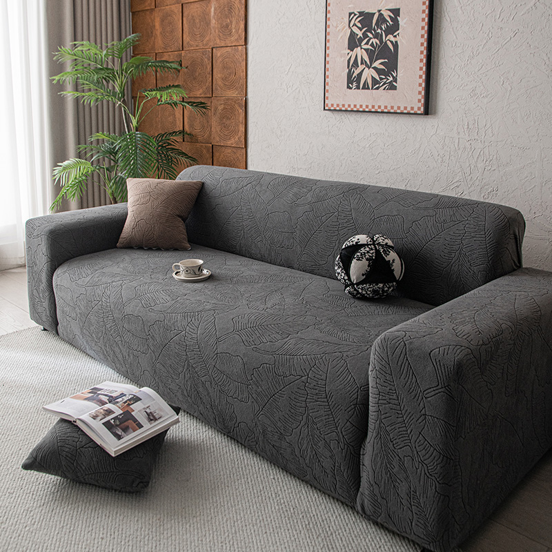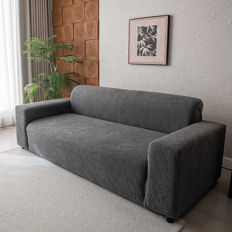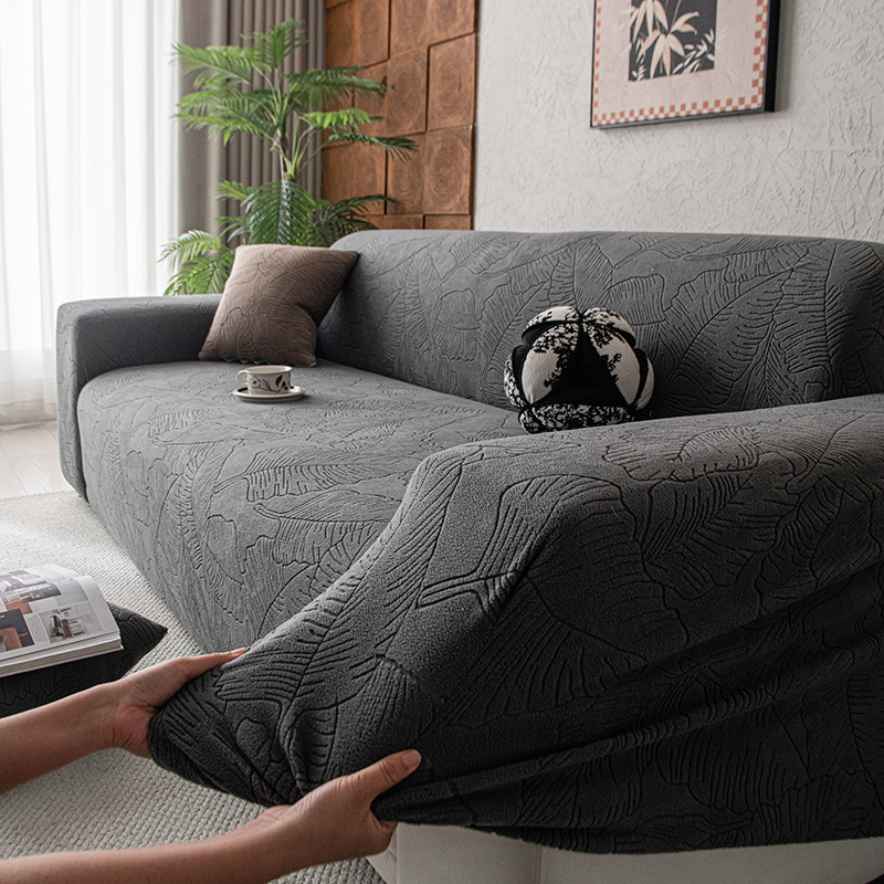 商品名称:逐日沙发套 2025新款提花绒沙发套-叶沙 深灰