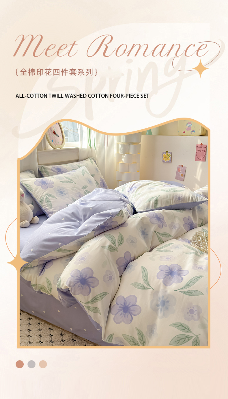 当前位置: 91家纺网 > 商品网购 > 床品套件 > 四件套 > 全棉普通四件套 > 清雅福 2025全棉13372小清新四件套和单被套早春系列第二批--四件套 玺园