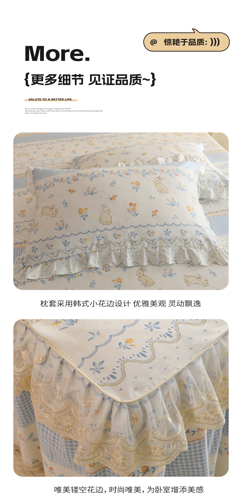 (总)美达家纺 2025新款全棉纯棉AB版蕾丝小花边单层床裙四件套,解语花,南湘,沁雨花叶,悦棠
