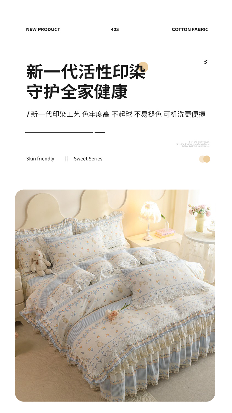 美达家纺 2025新款全棉印花床裙四件套 少女心结