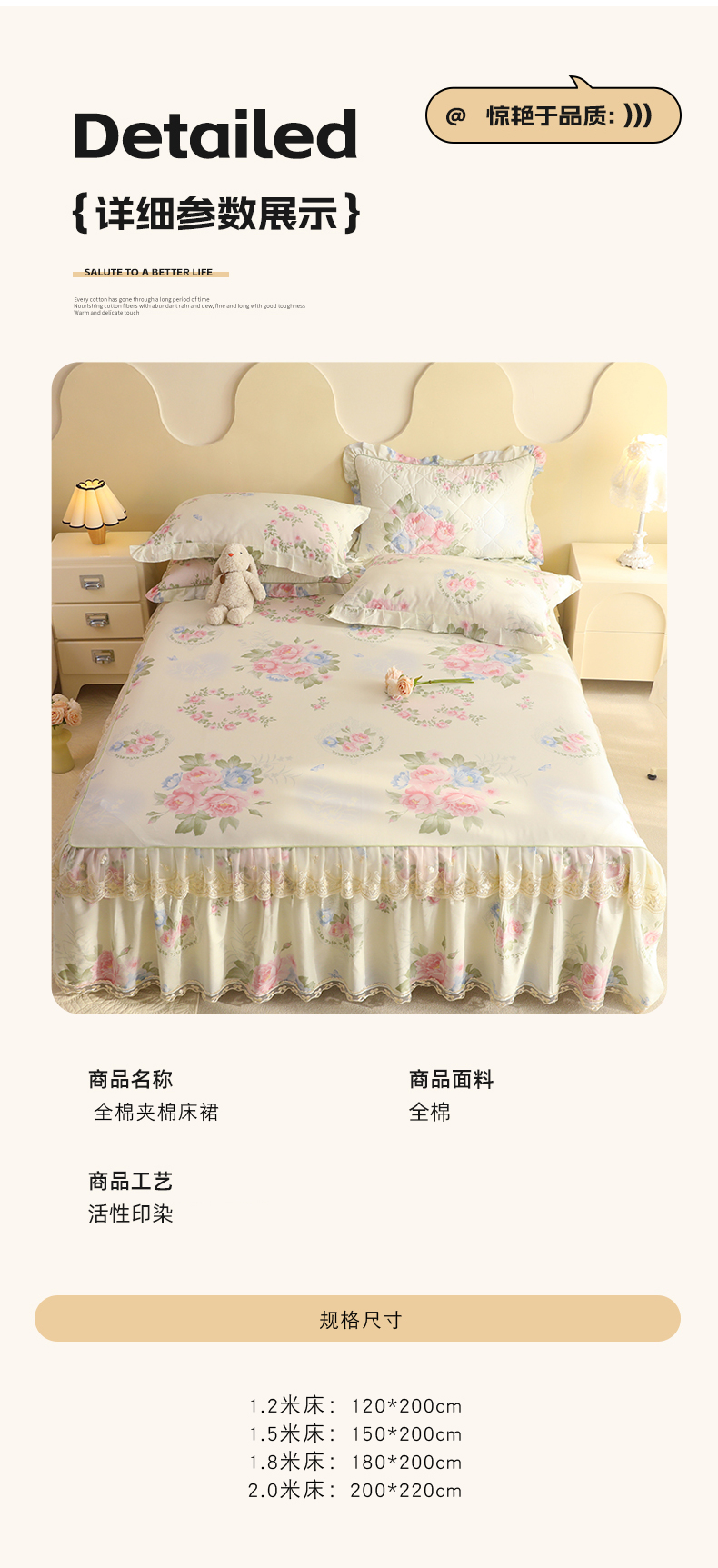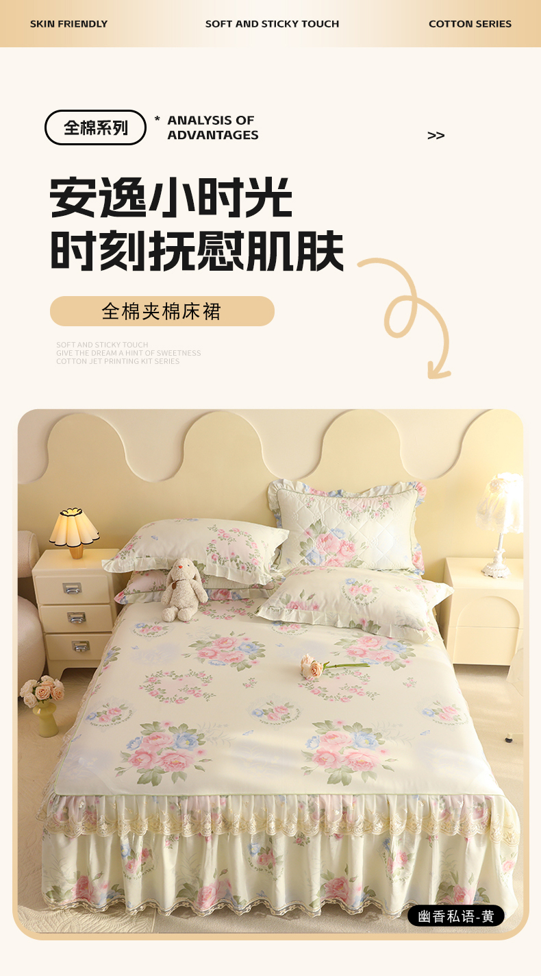 (总)美达家纺 2025新款全棉AB版单层床裙,解语花,南湘,沁雨花叶,悦棠