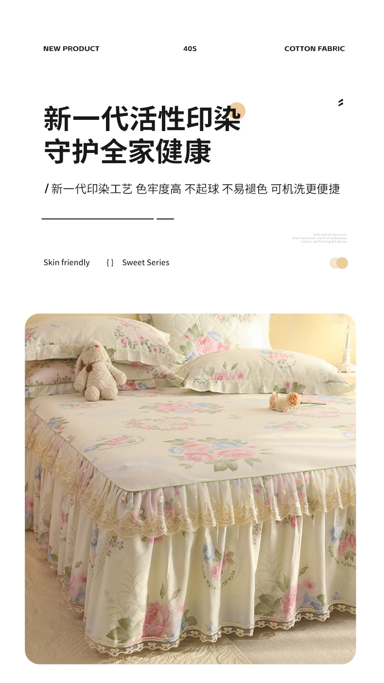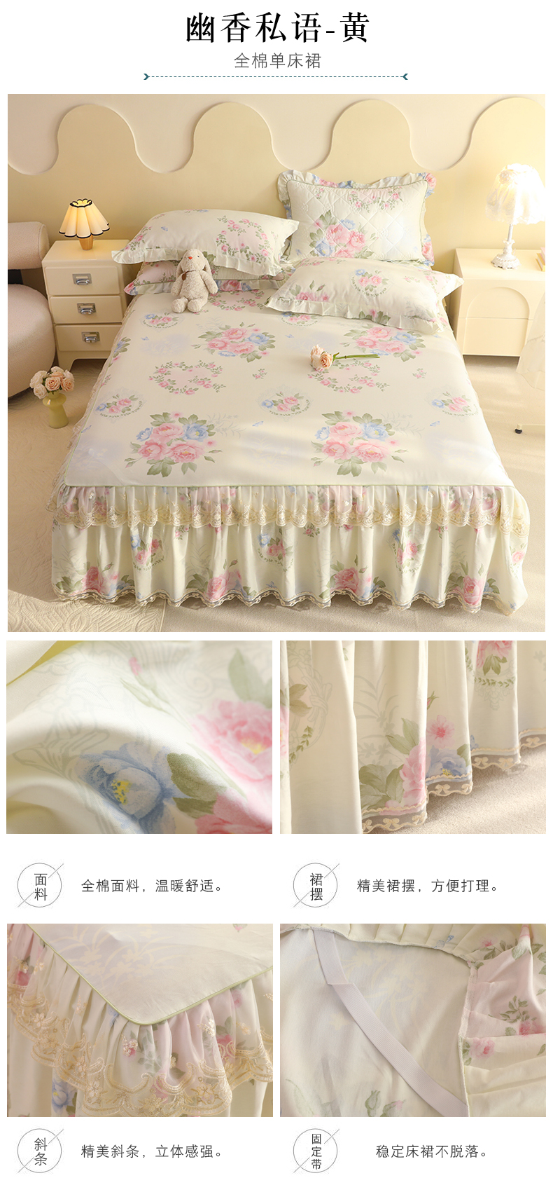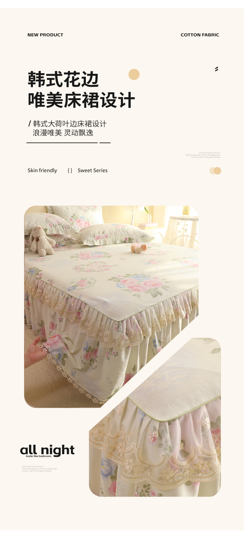 (总)美达家纺 2025新款全棉纯棉AB版蕾丝小花边单层床裙四件套,解语花,南湘,沁雨花叶,悦棠