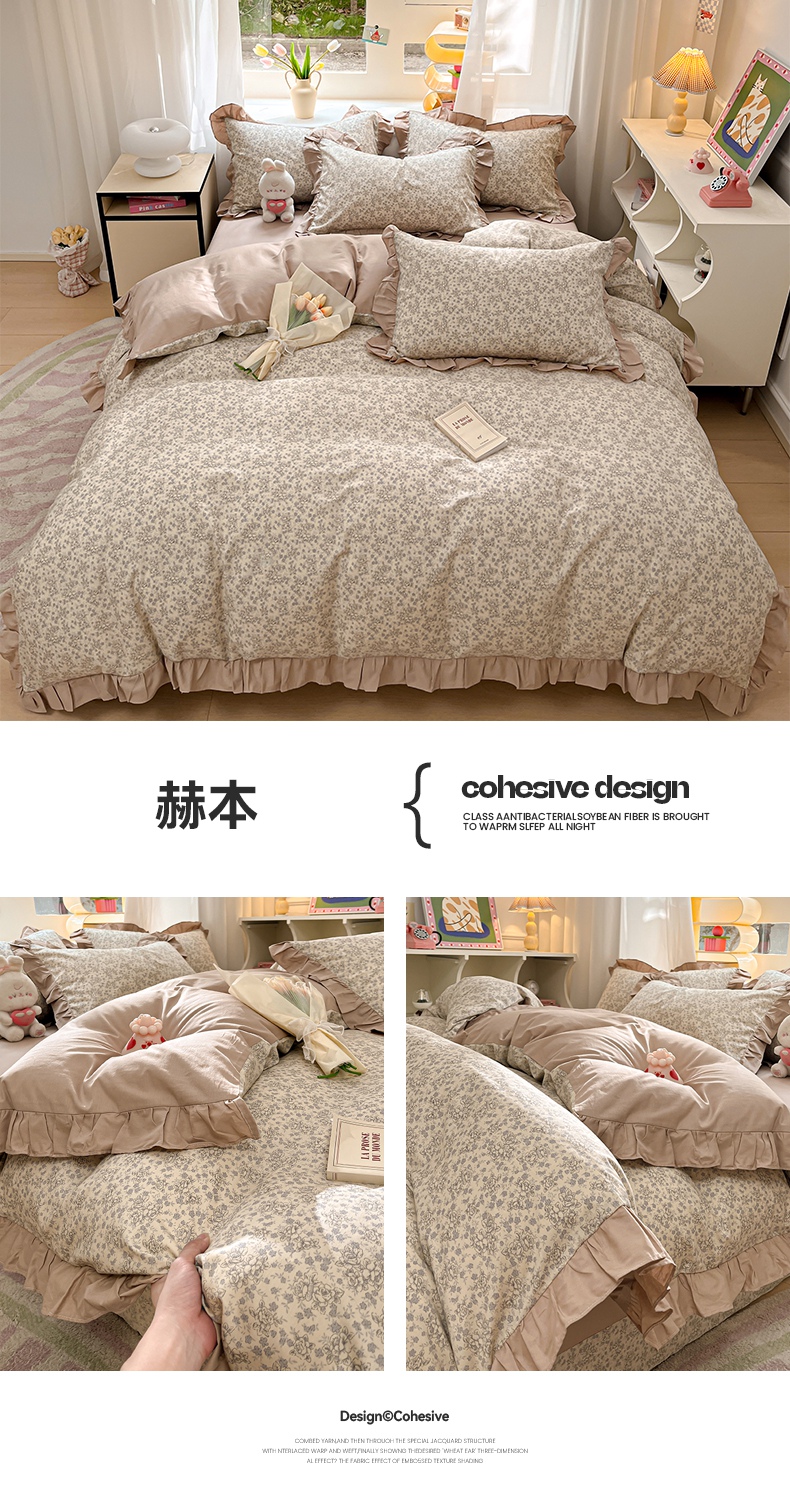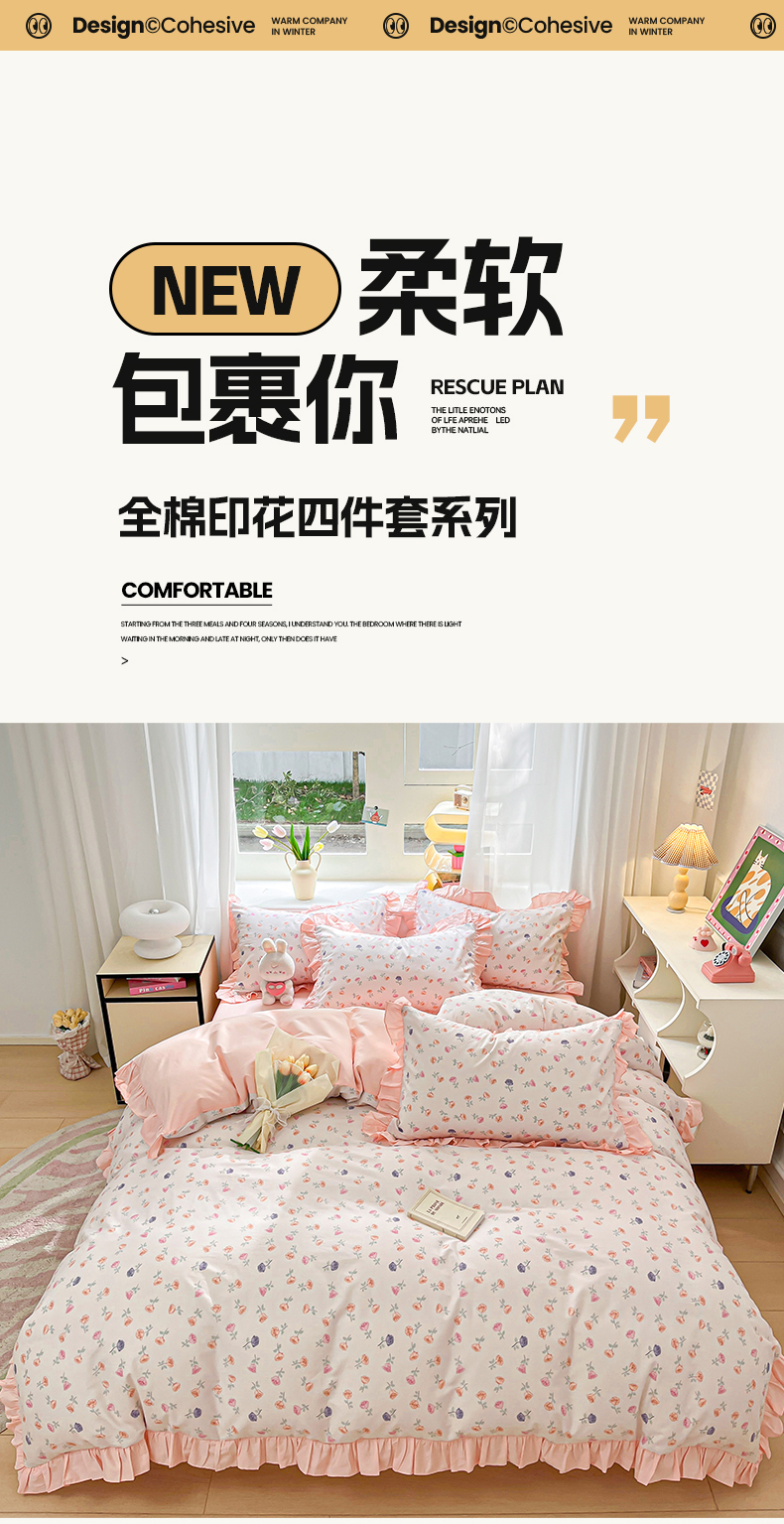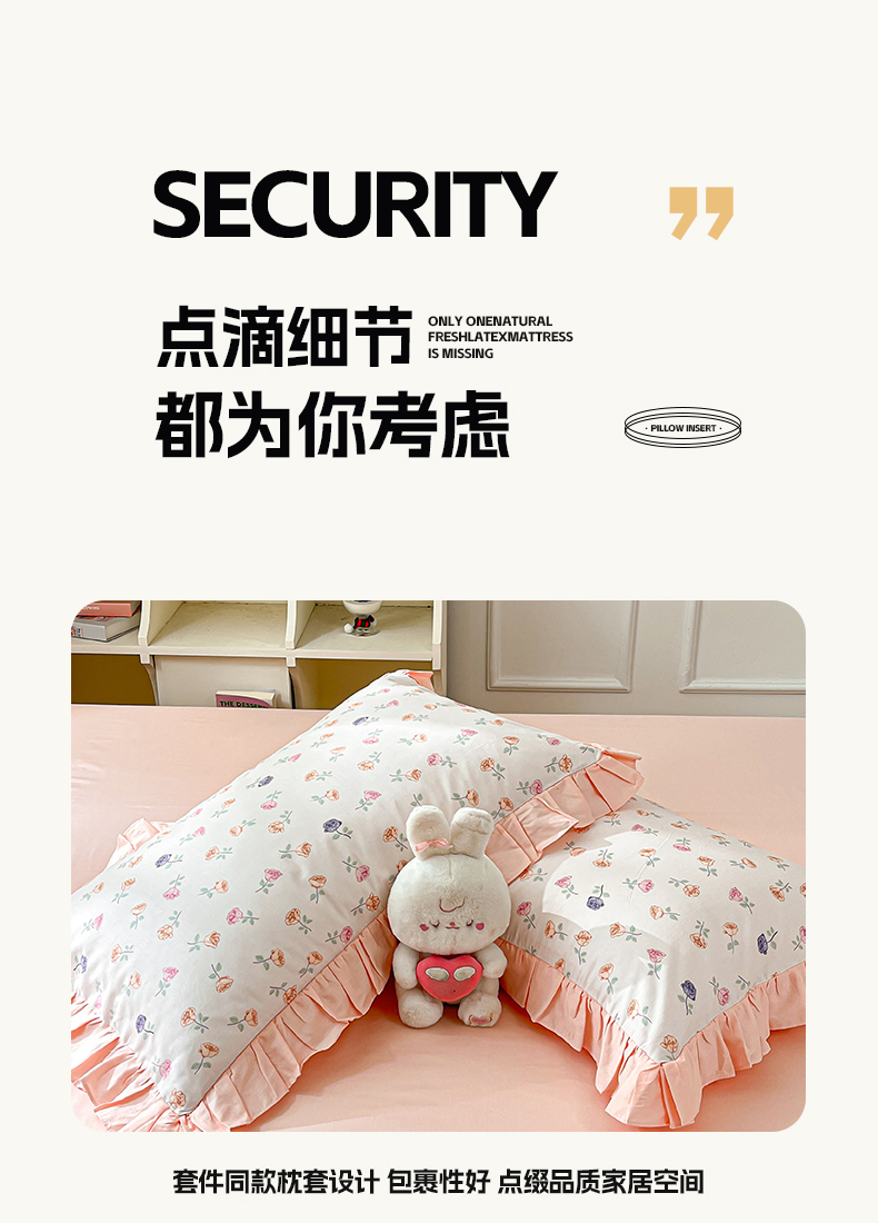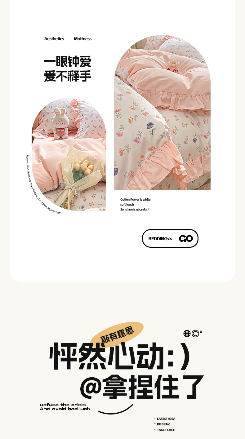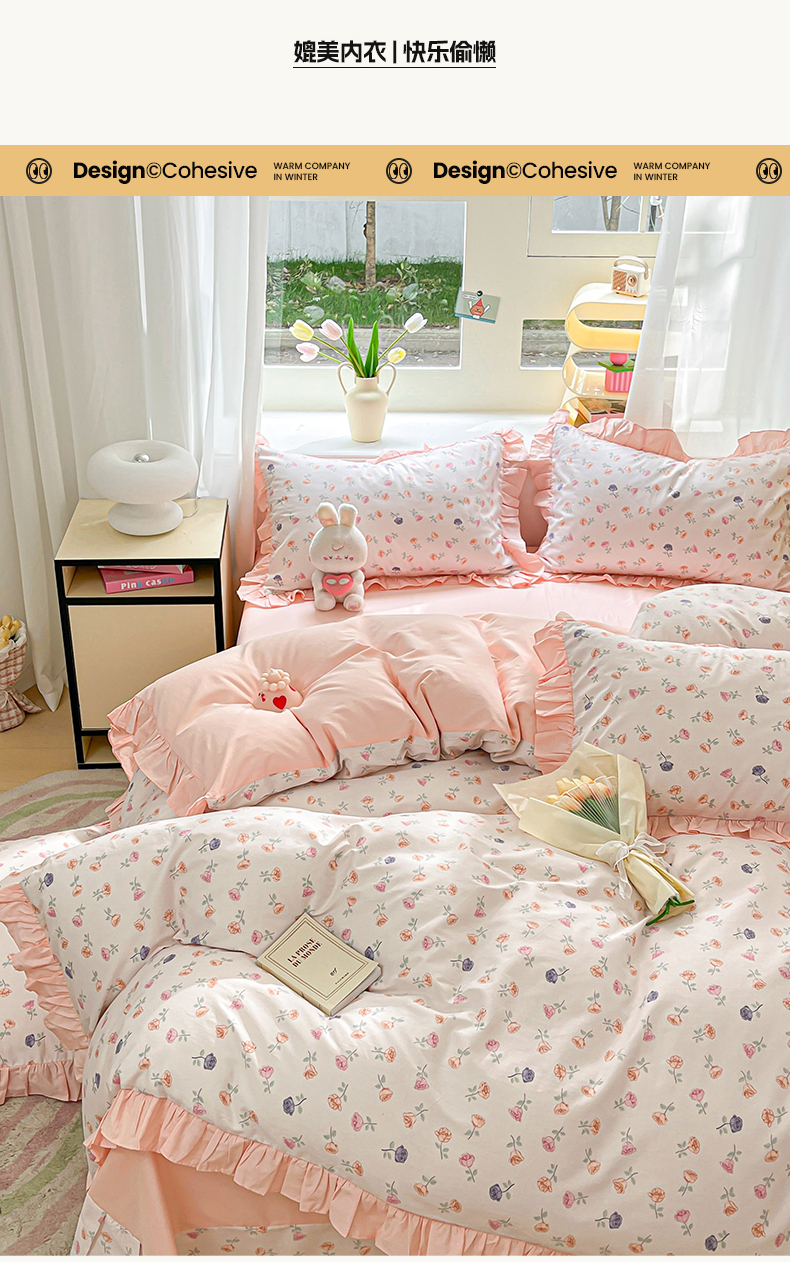 商品名称:美洲琳 2025新款40支13372全棉韩版公主风花边四件套 花妃语寐-粉