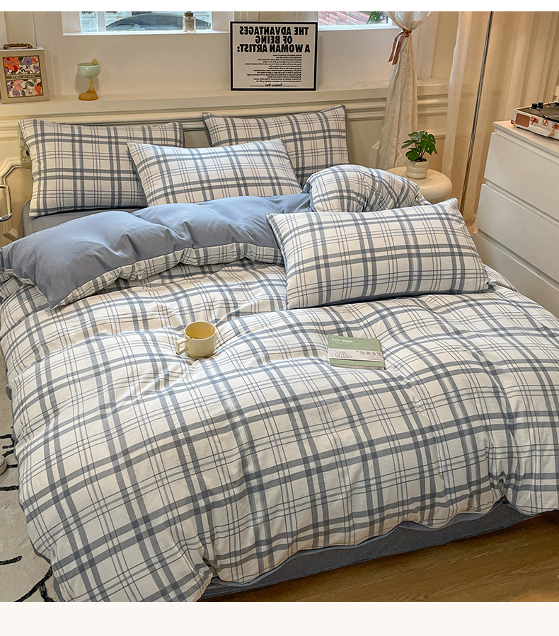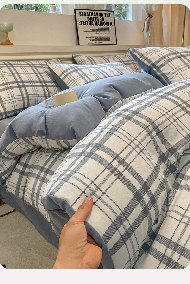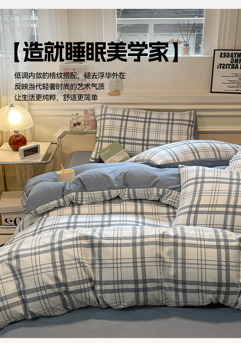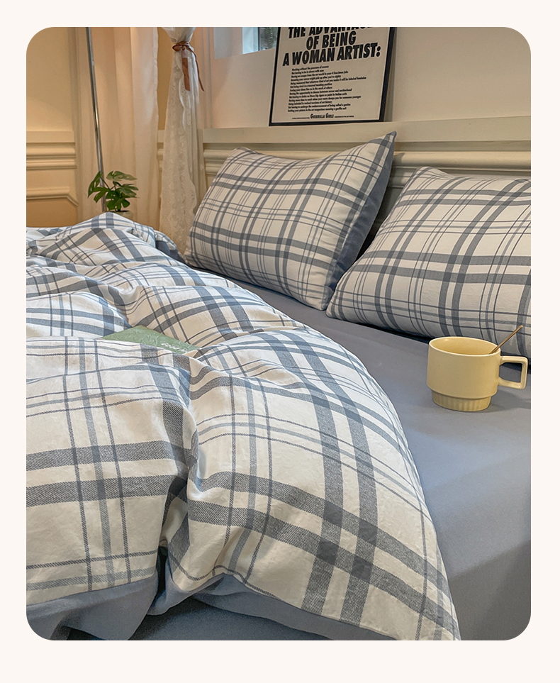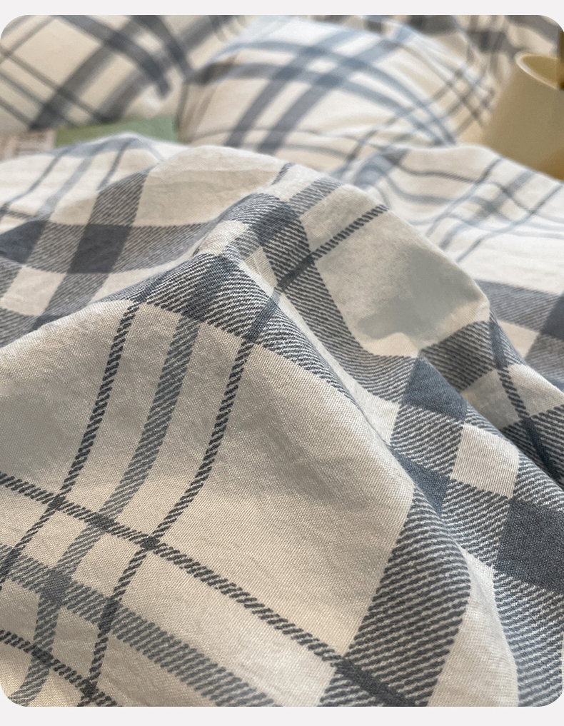 当前位置: 91家纺网 > 商品网购 > 床品套件 > 四件套 > 水洗棉四件套 > 盛秋家纺 2025新款水洗棉格子系列四件套蓝调+海清