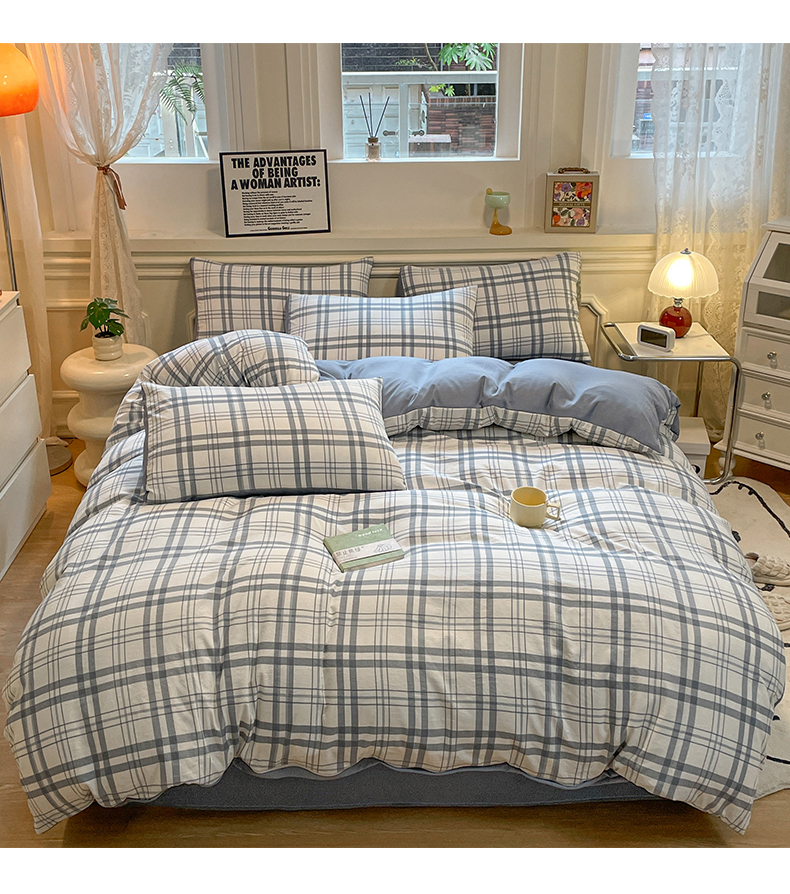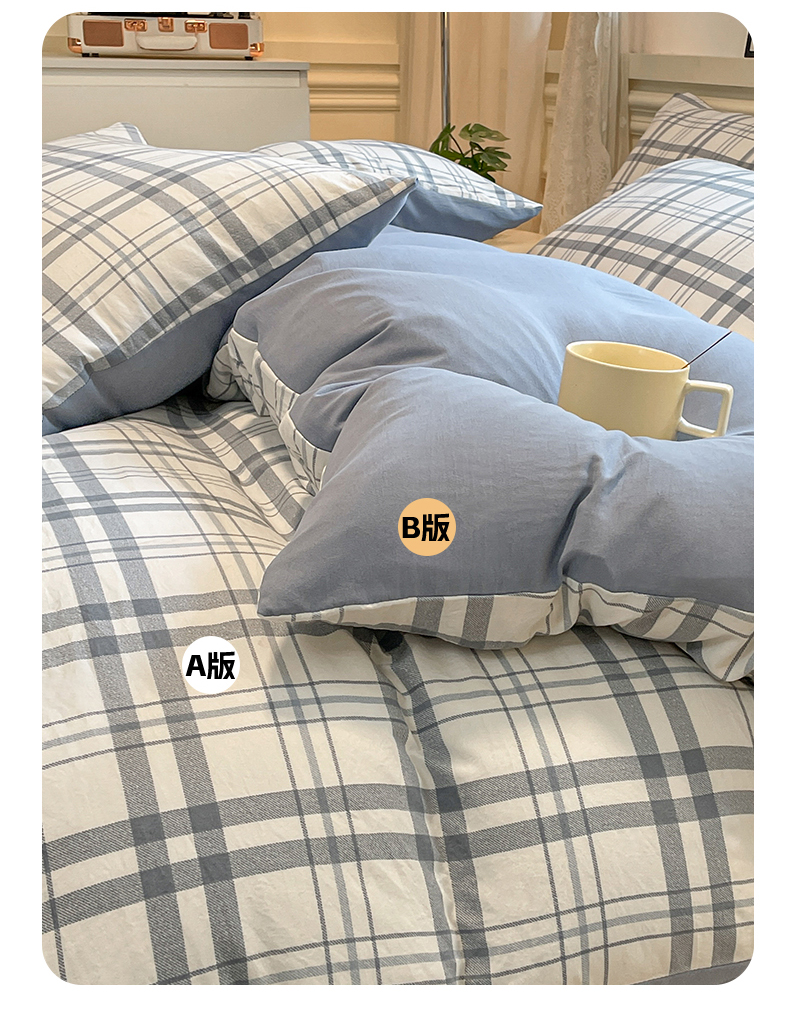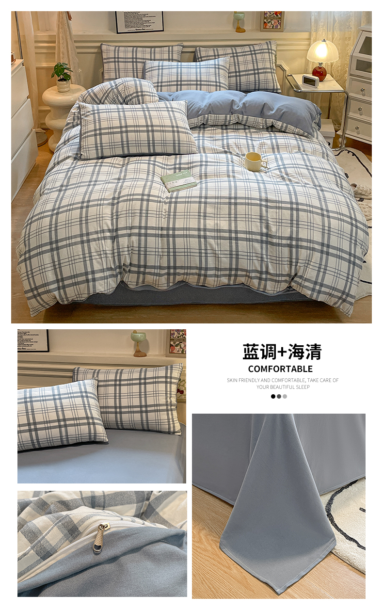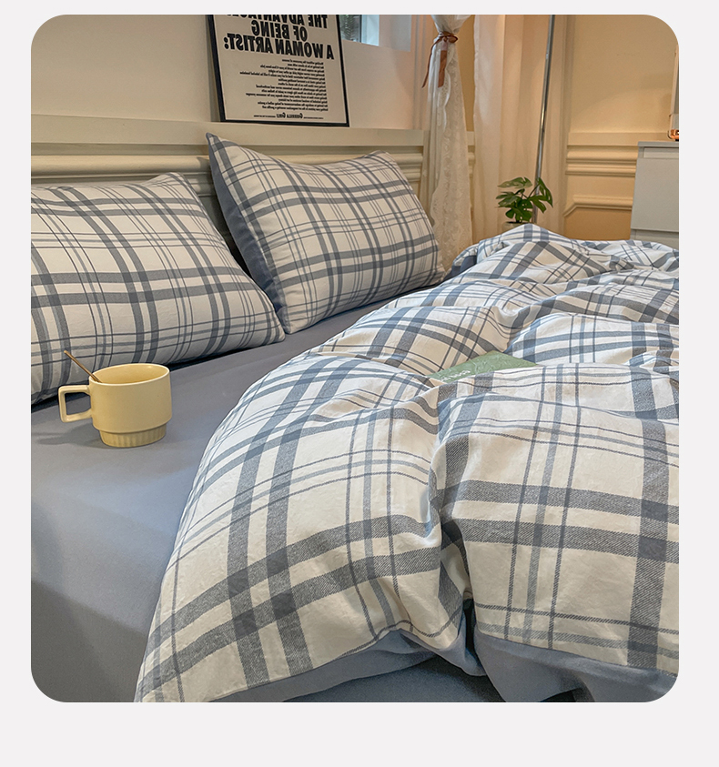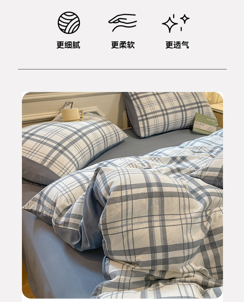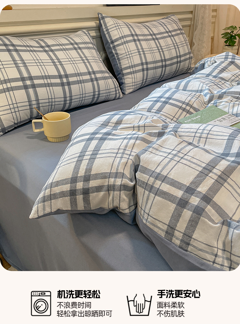当前位置: 91家纺网 > 商品网购 > 床品套件 > 四件套 > 水洗棉四件套 > 盛秋家纺 2025新款水洗棉格子系列四件套蓝调+海清