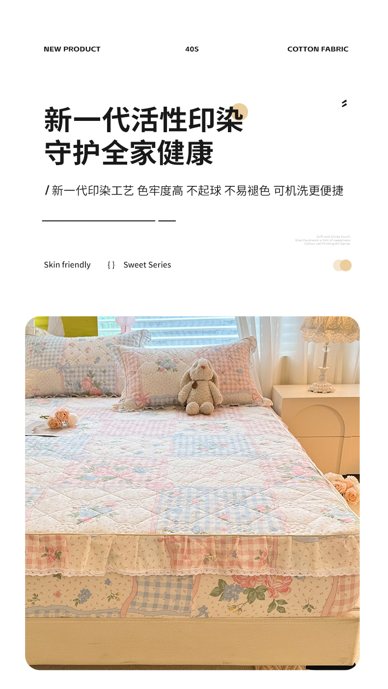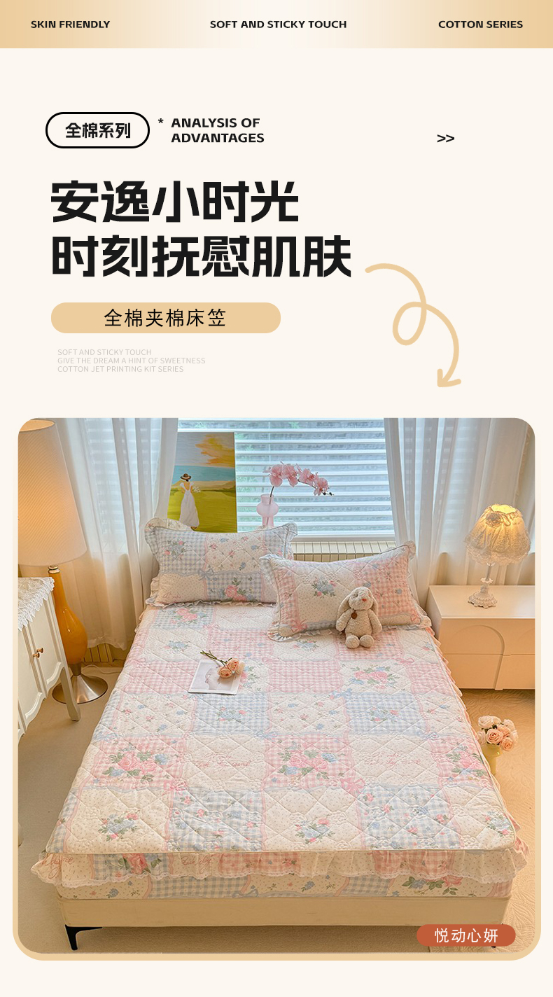 美达家纺 2025新款全棉印花夹棉床笠 绮梦花源