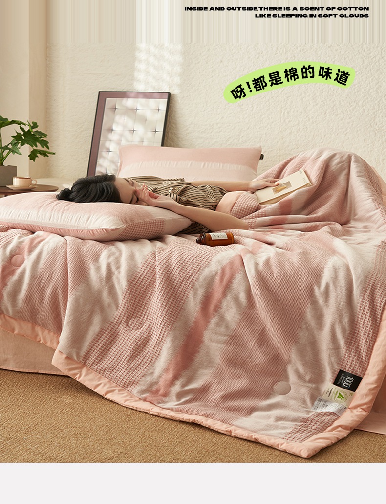 2025新款全棉色织大提花棉花夏凉被 被子被芯 洛川-粉