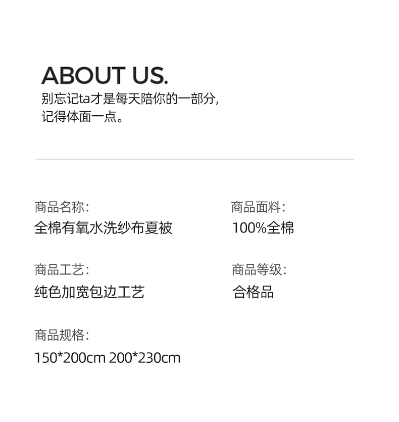 商品名称:(总)大彩家居 2025新款60S全棉有氧水洗纱布夏被夏凉被被子被芯空调被