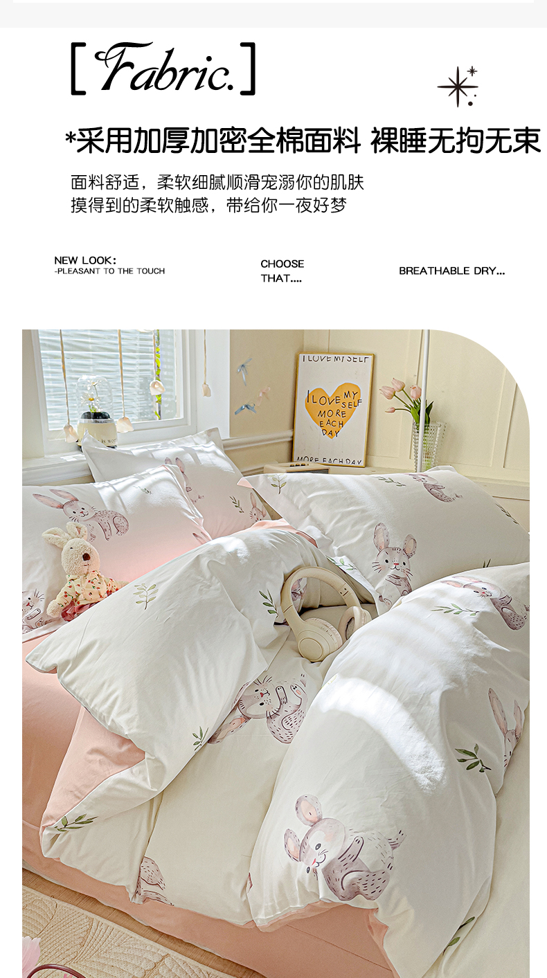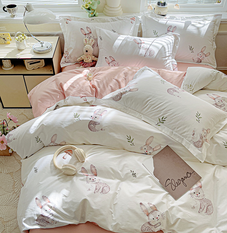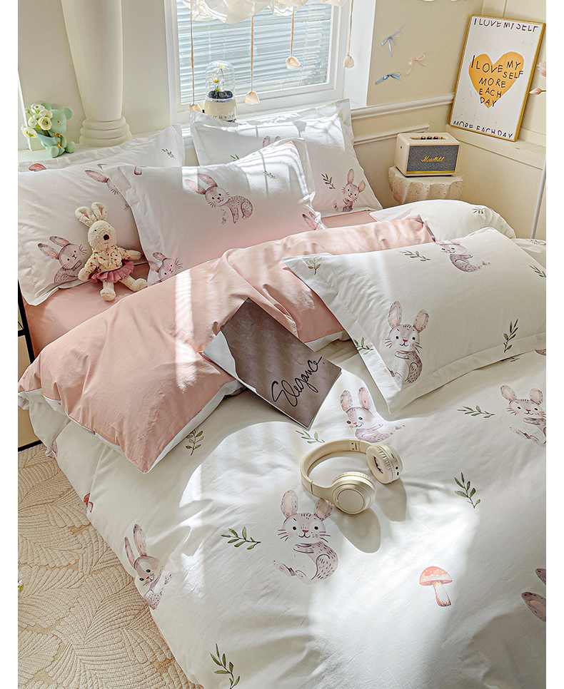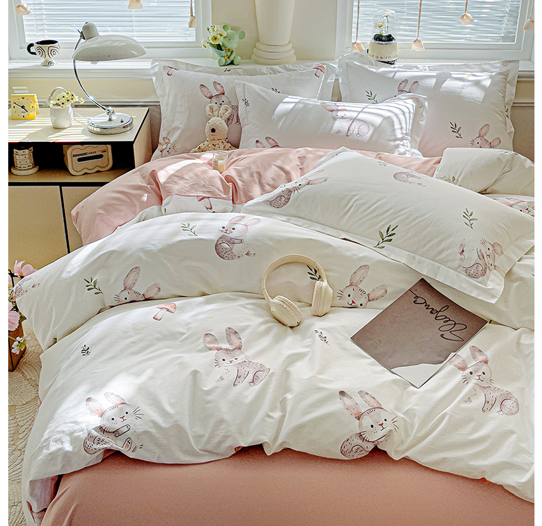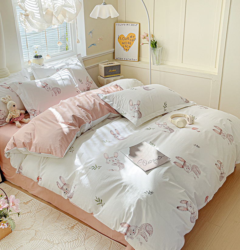 当前位置: 91家纺网 > 商品网购 > 床品套件 > 四件套 > 全棉普通四件套 > 大柏树 2025新款全棉13376印花四件套系列(可定制)-床单四件套小萌兔