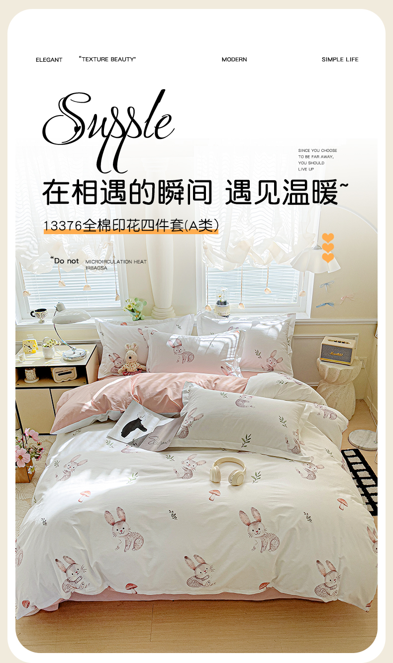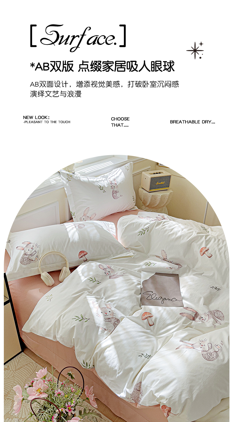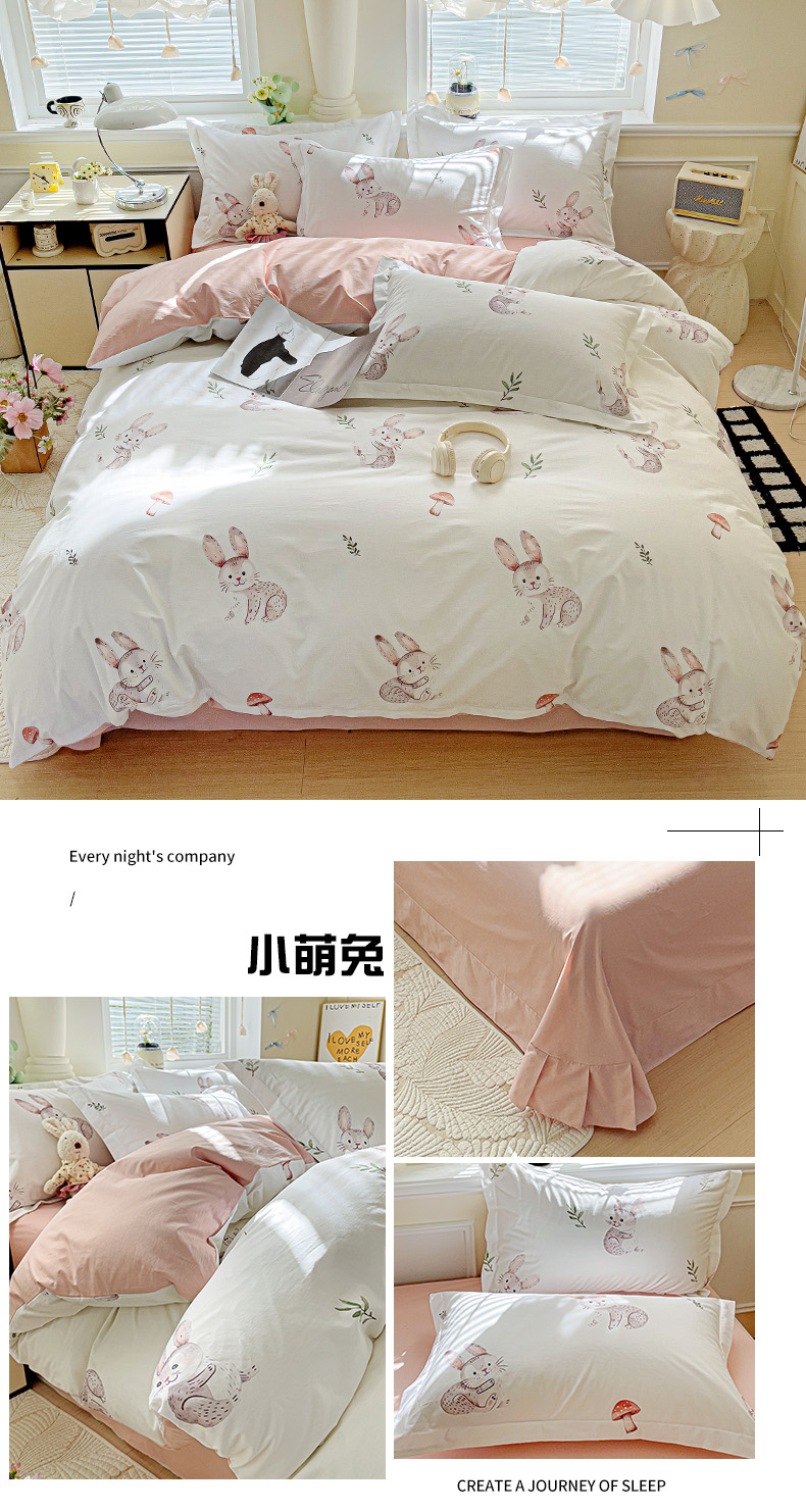 当前位置: 91家纺网 > 商品网购 > 床品套件 > 四件套 > 全棉普通四件套 > 大柏树 2025新款全棉13376印花四件套系列(可定制)-床单四件套小萌兔