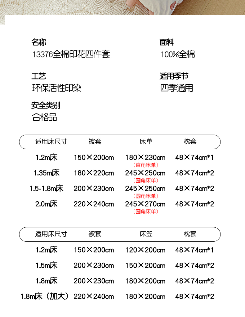 1.8m床笠四件套被套200*230 | ¥150.00 |