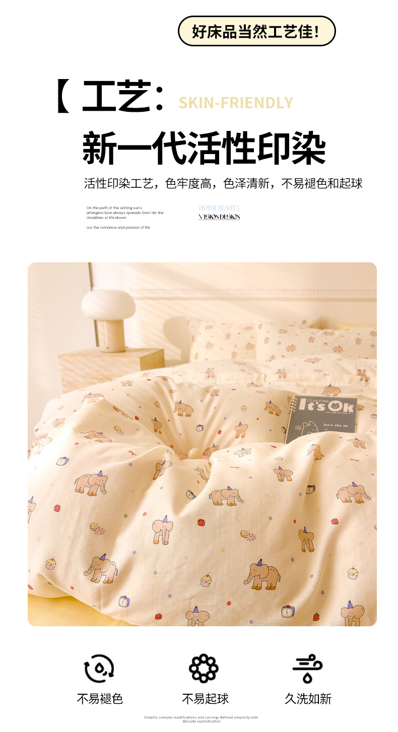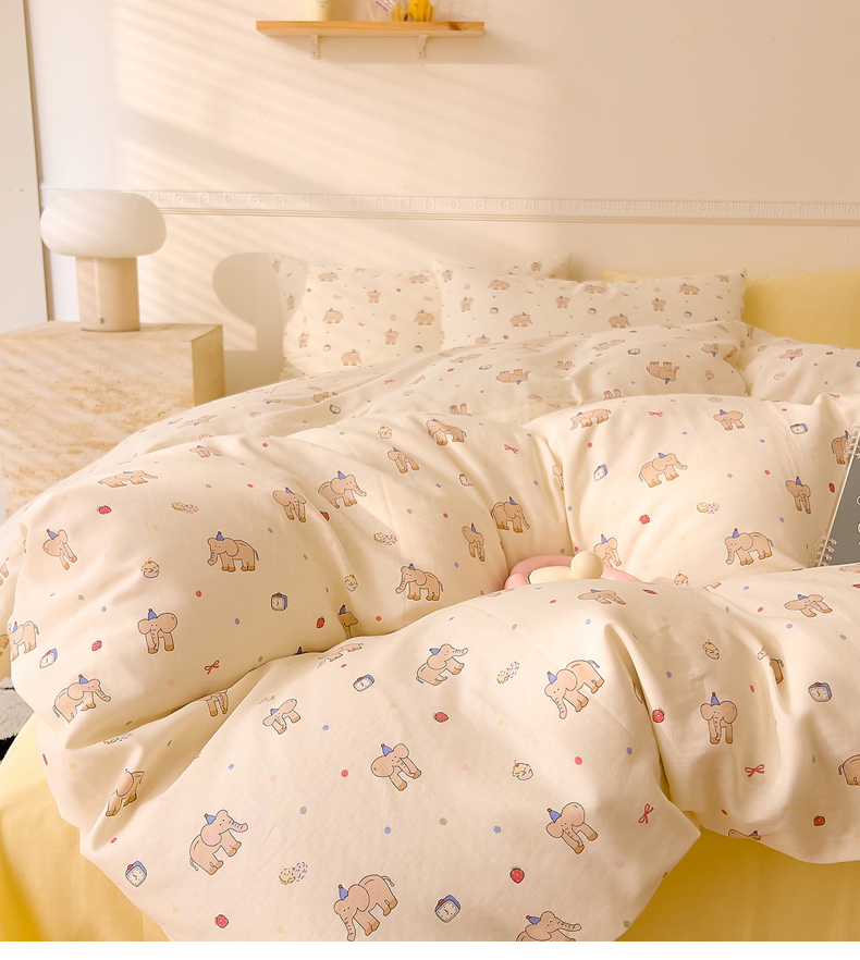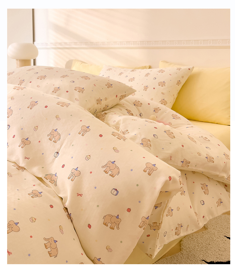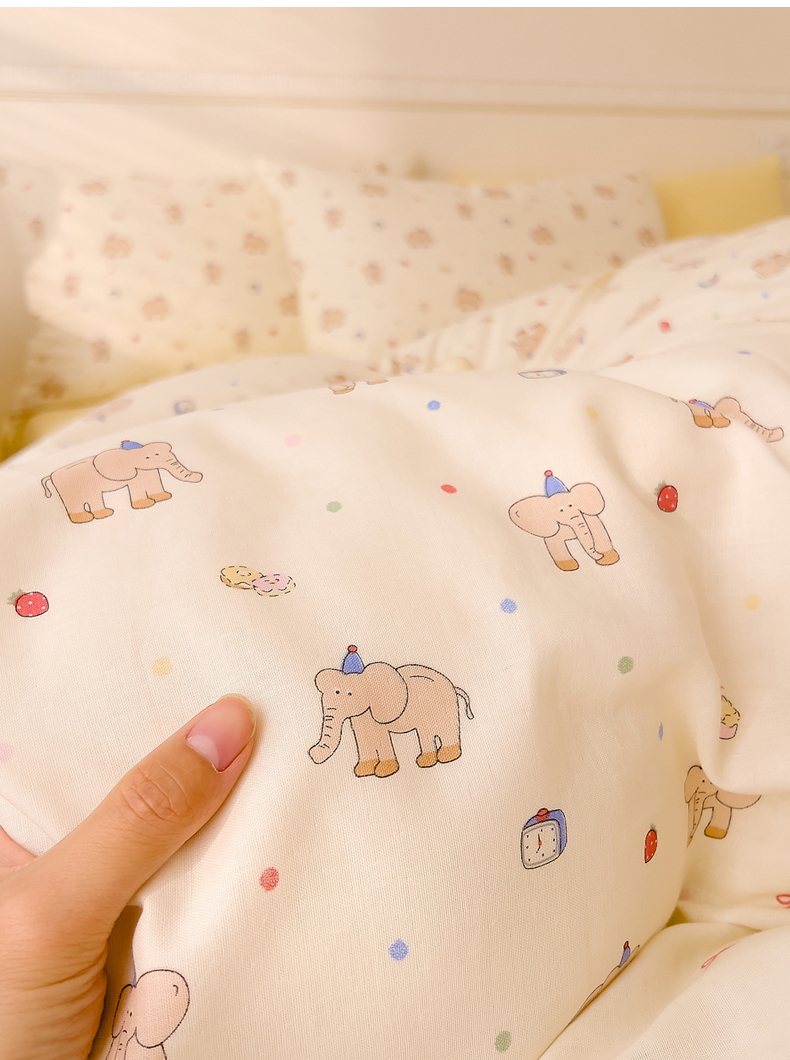 当前位置: 91家纺网 > 商品网购 > 床品套件 > 四件套 > 全棉普通四件套 > DoDo 兜兜 2025新款全棉双层纱印花四件套(可定做尺寸) 可爱小象