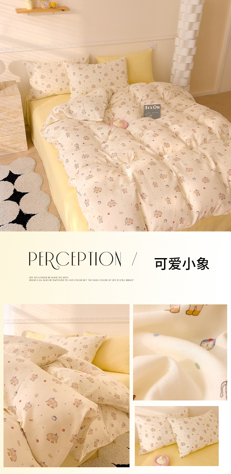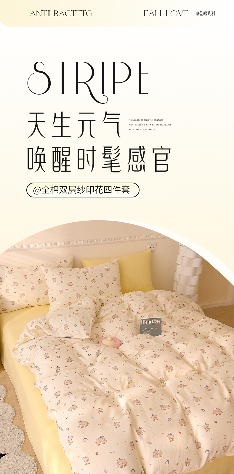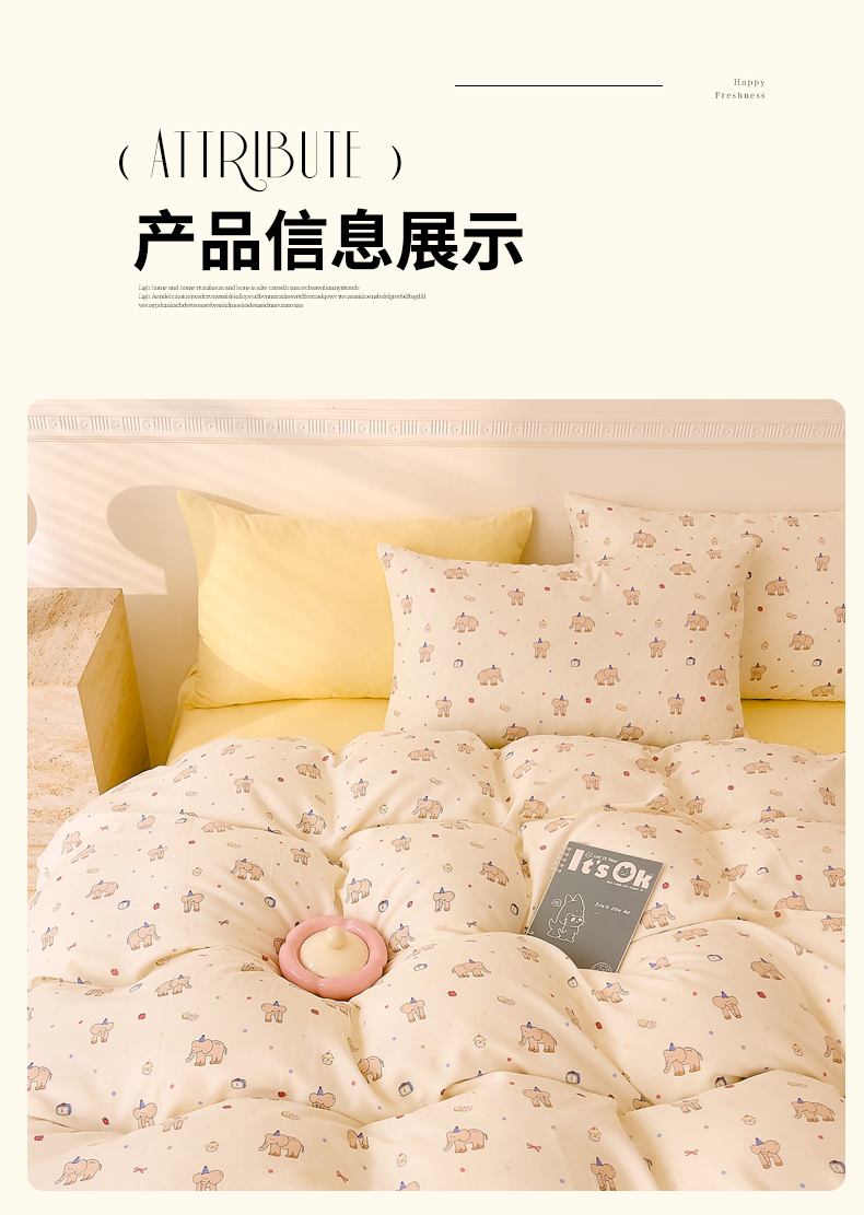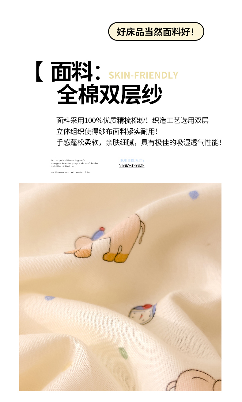 当前位置: 91家纺网 > 商品网购 > 床品套件 > 四件套 > 全棉普通四件套 > DoDo 兜兜 2025新款全棉双层纱印花四件套(可定做尺寸) 可爱小象