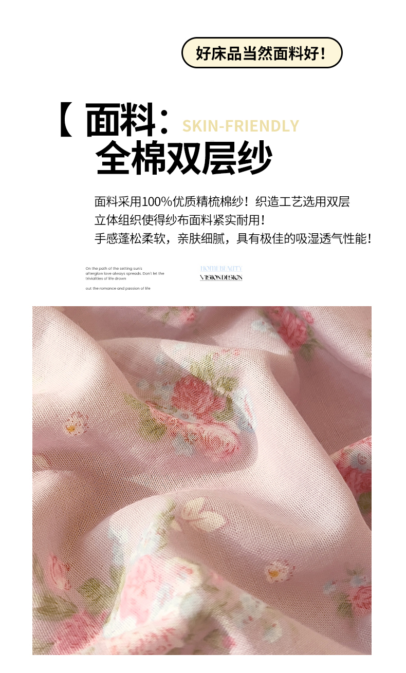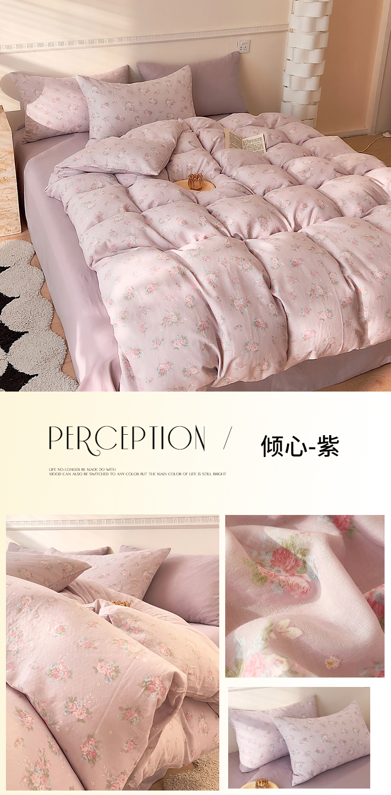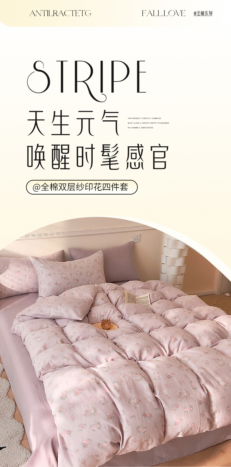 当前位置: 91家纺网 > 商品网购 > 床品套件 > 四件套 > 全棉普通四件套 > DoDo 兜兜 2025新款全棉双层纱印花四件套(可定做尺寸) 倾心-紫