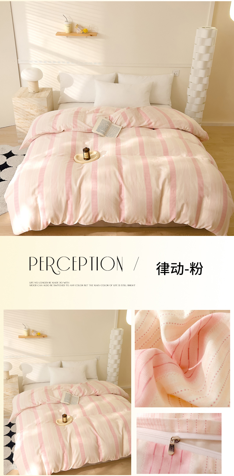 • 91家纺网 家纺一手货源 找家纺 DoDo 兜兜 2026新款全棉双层纱印花单被套(可定做尺寸) 律动-粉