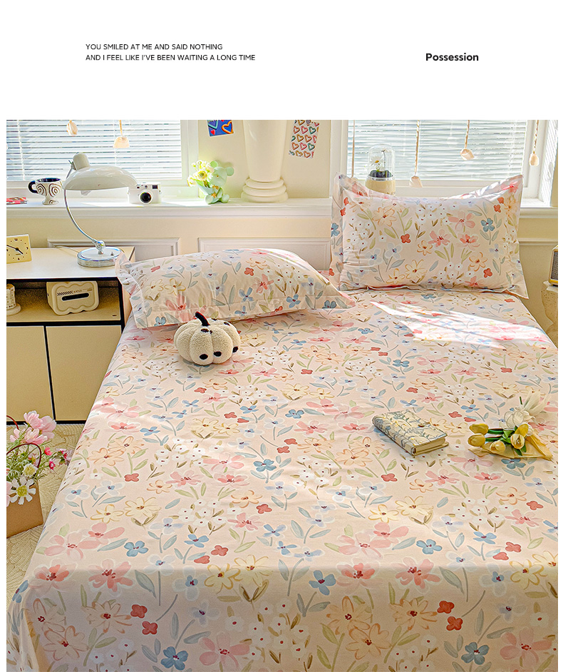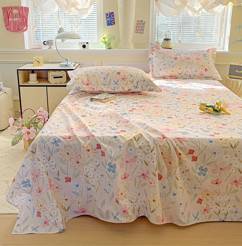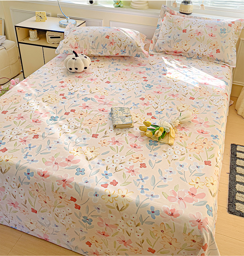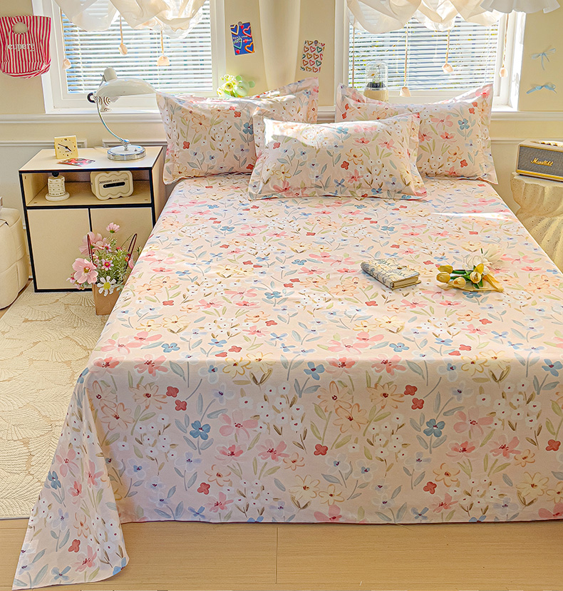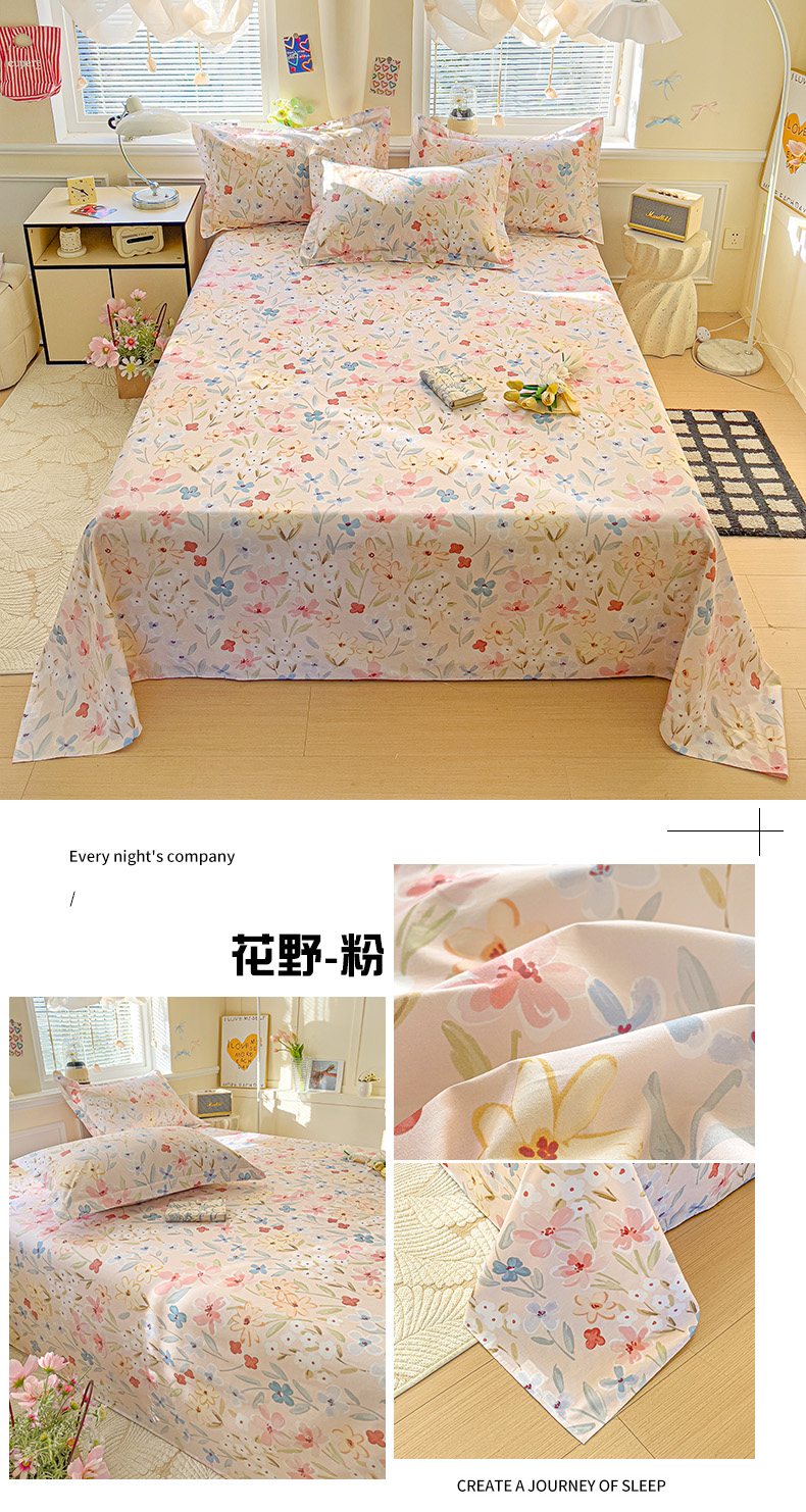 大柏树 2025新款全棉13376印花四件套系列(可定制)-单床单花野-粉
