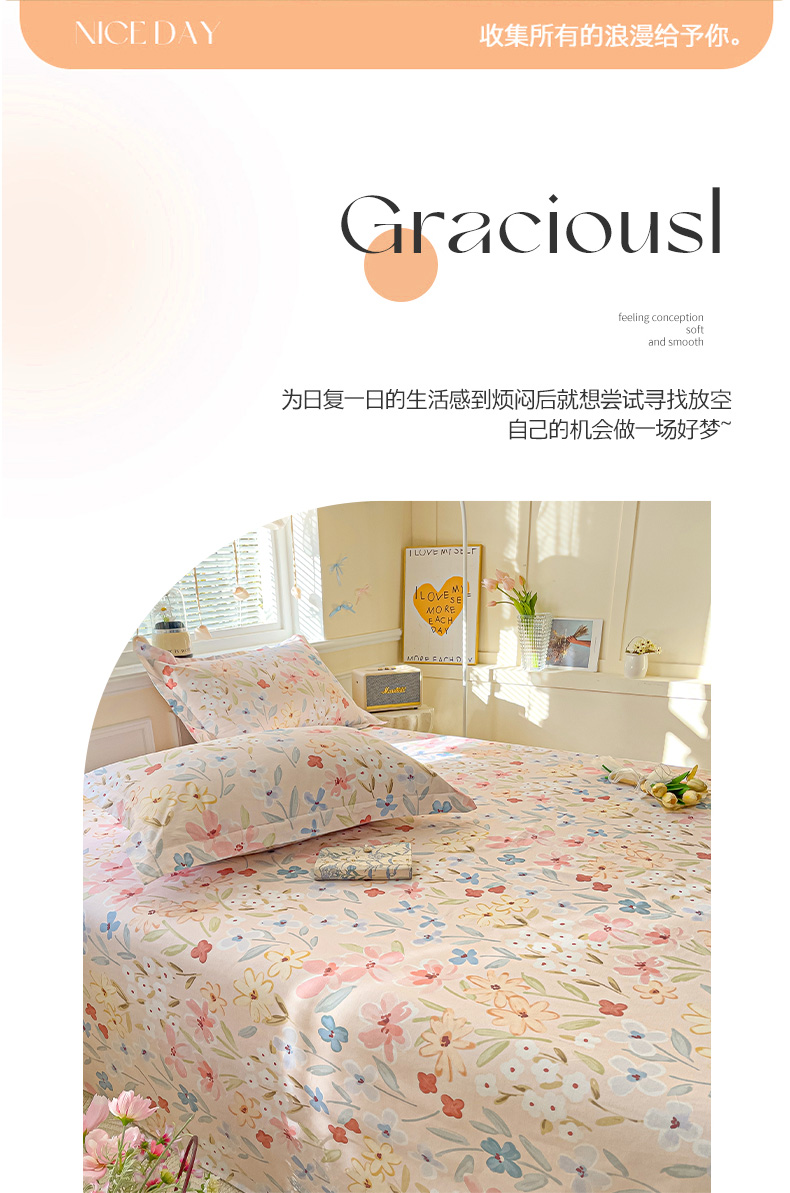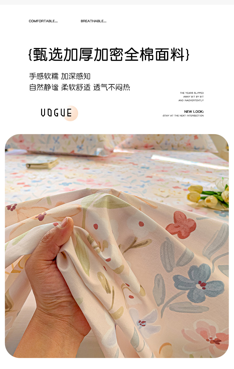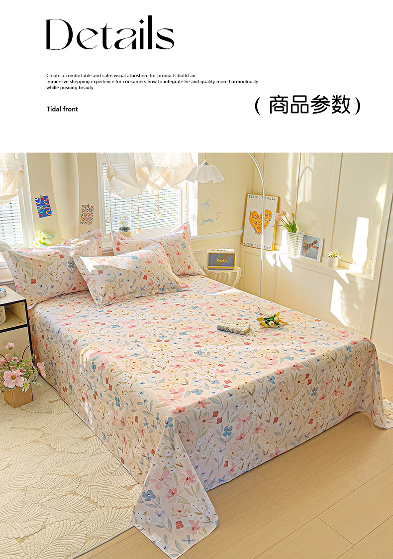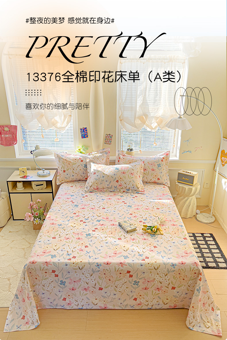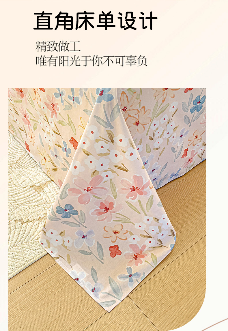商品名称:大柏树 2025新款全棉13376印花四件套系列(可定制)-单床单花野-粉
