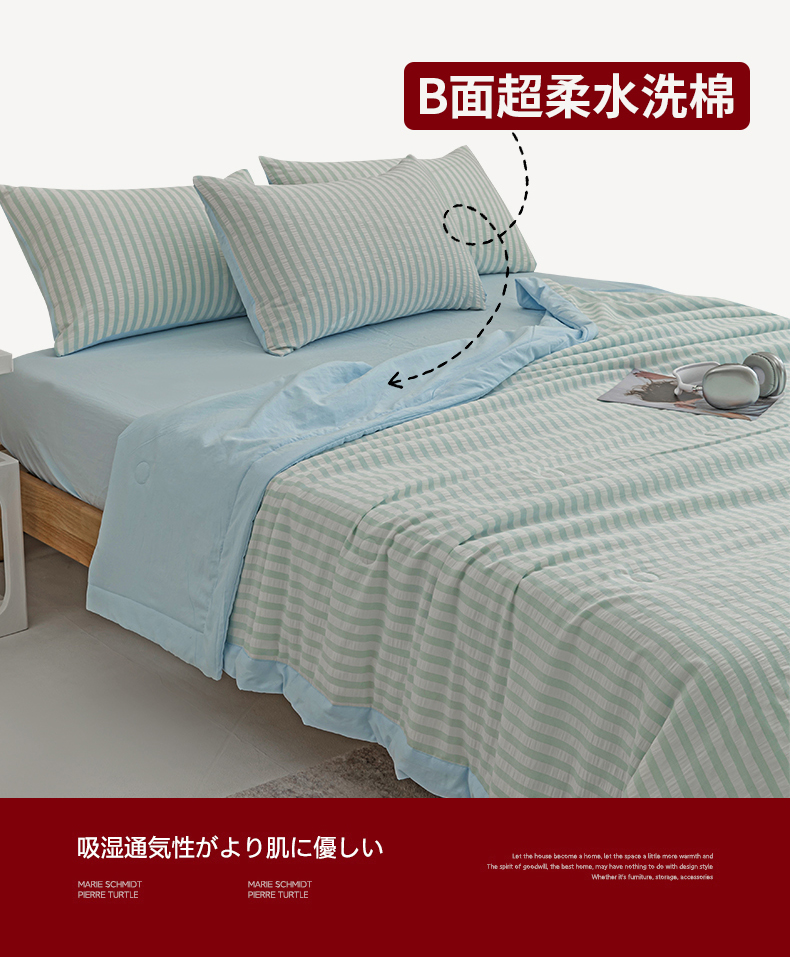• 91家纺网 家纺一手货源 找家纺 恩和家纺 2025新款水洗提花条纹夏凉被被子被芯 蓝白条