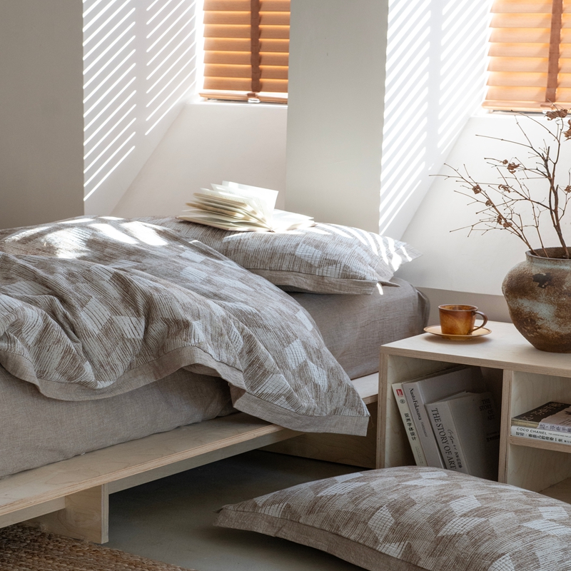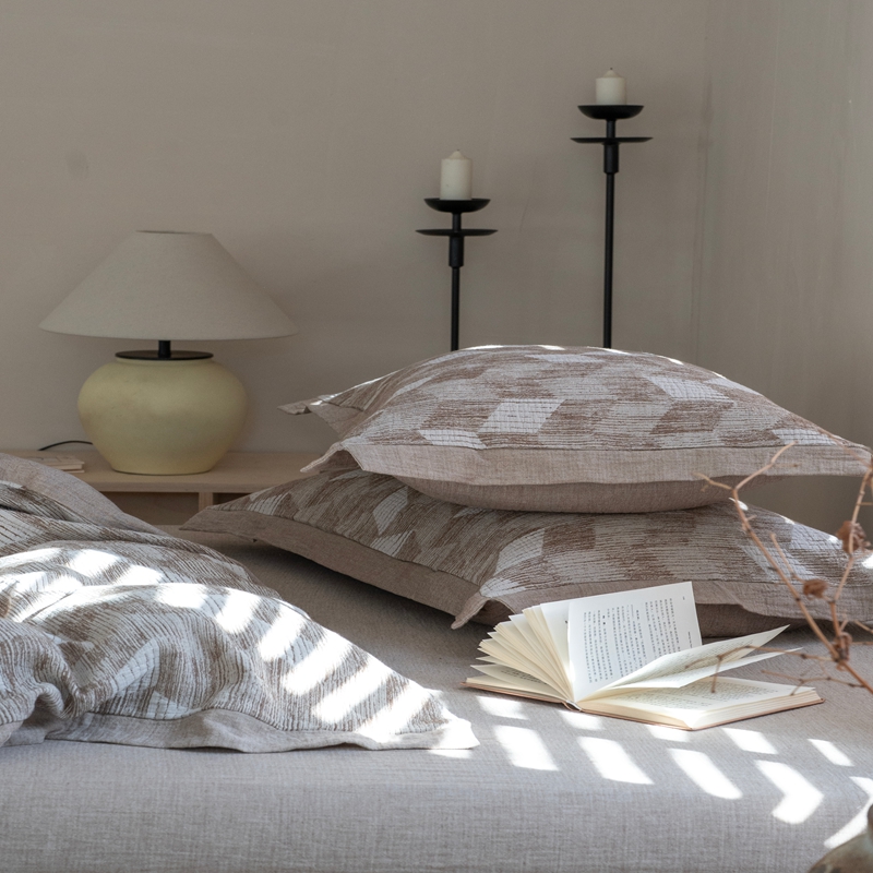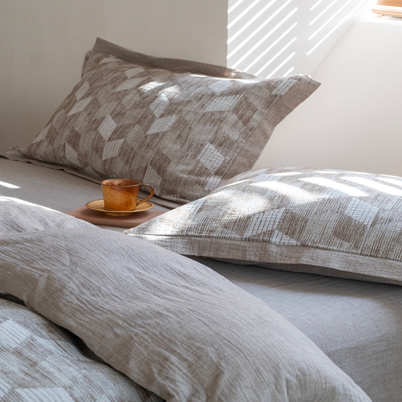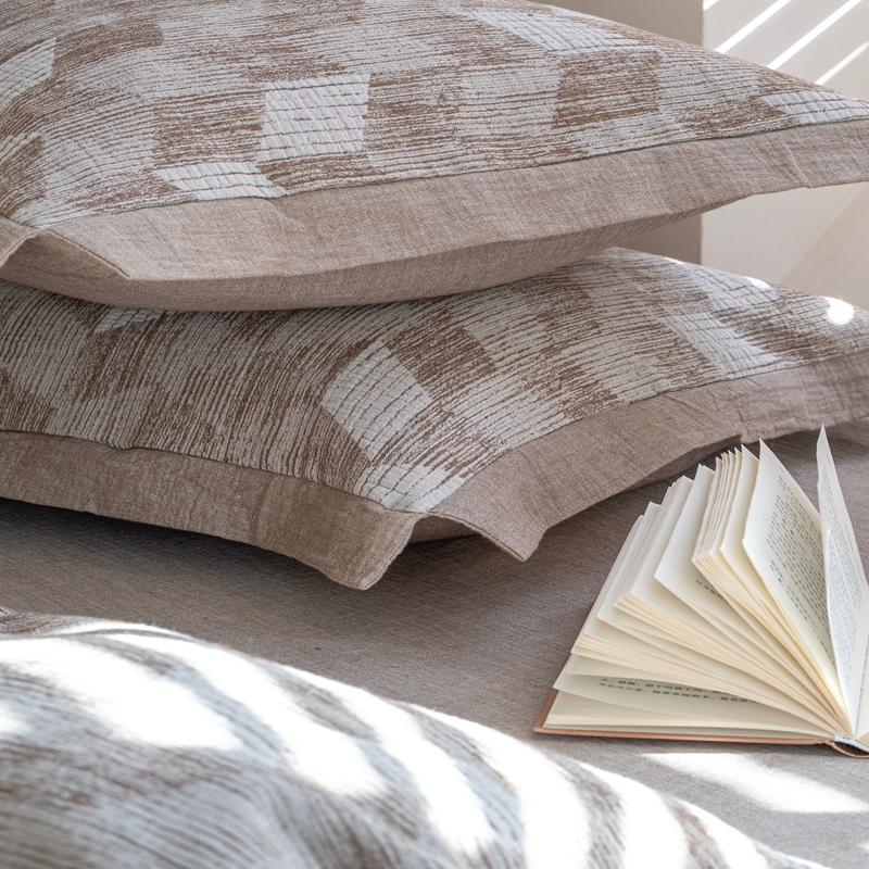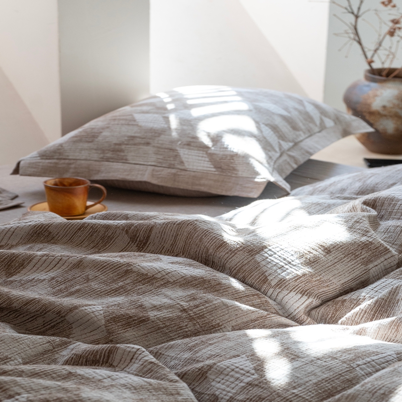 (总)璞素2025新款全棉色织三层纱床盖三件套-摩卡,摩卡灰,摩卡咖