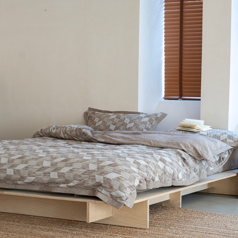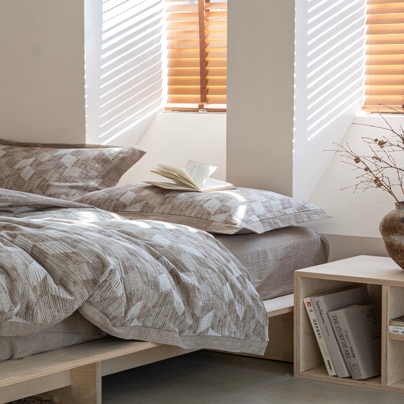 商品名称:璞素2025新款全棉色织三层纱四件套 咖色