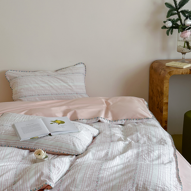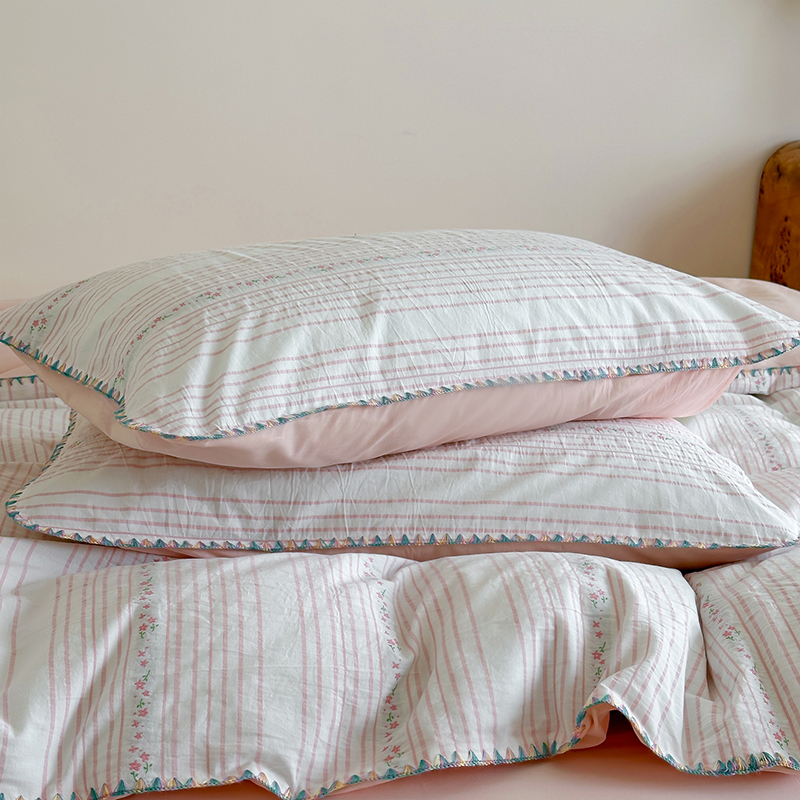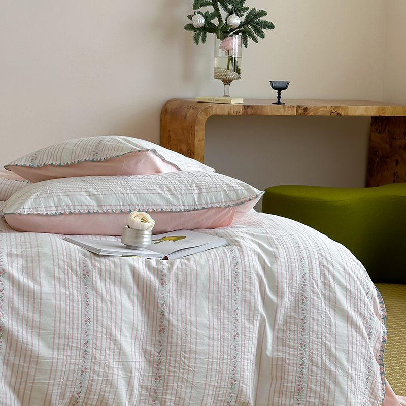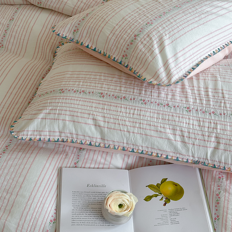 觅糖家纺 2025新款色织提花贝壳边三角针系列四件套 秘密花园