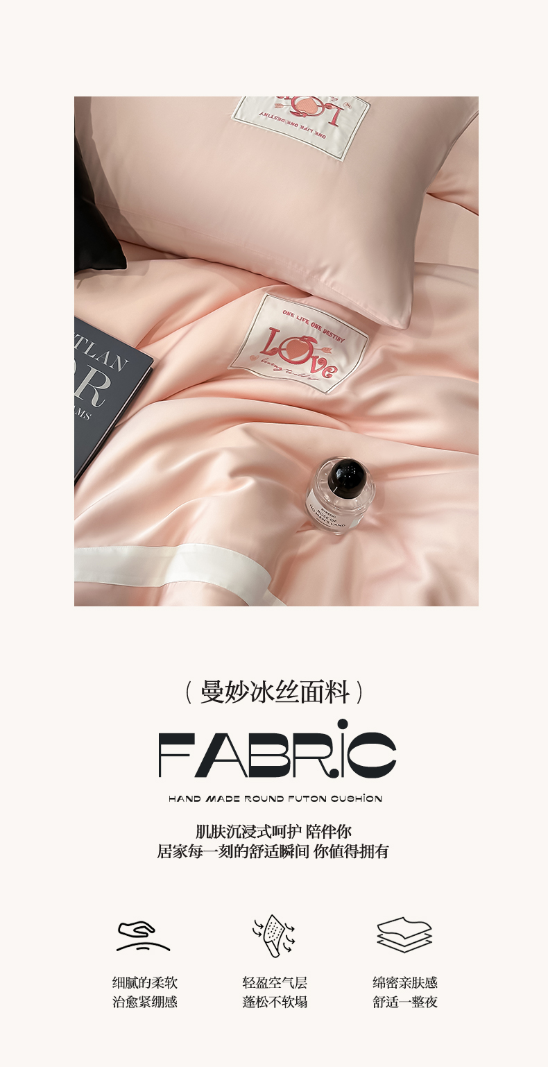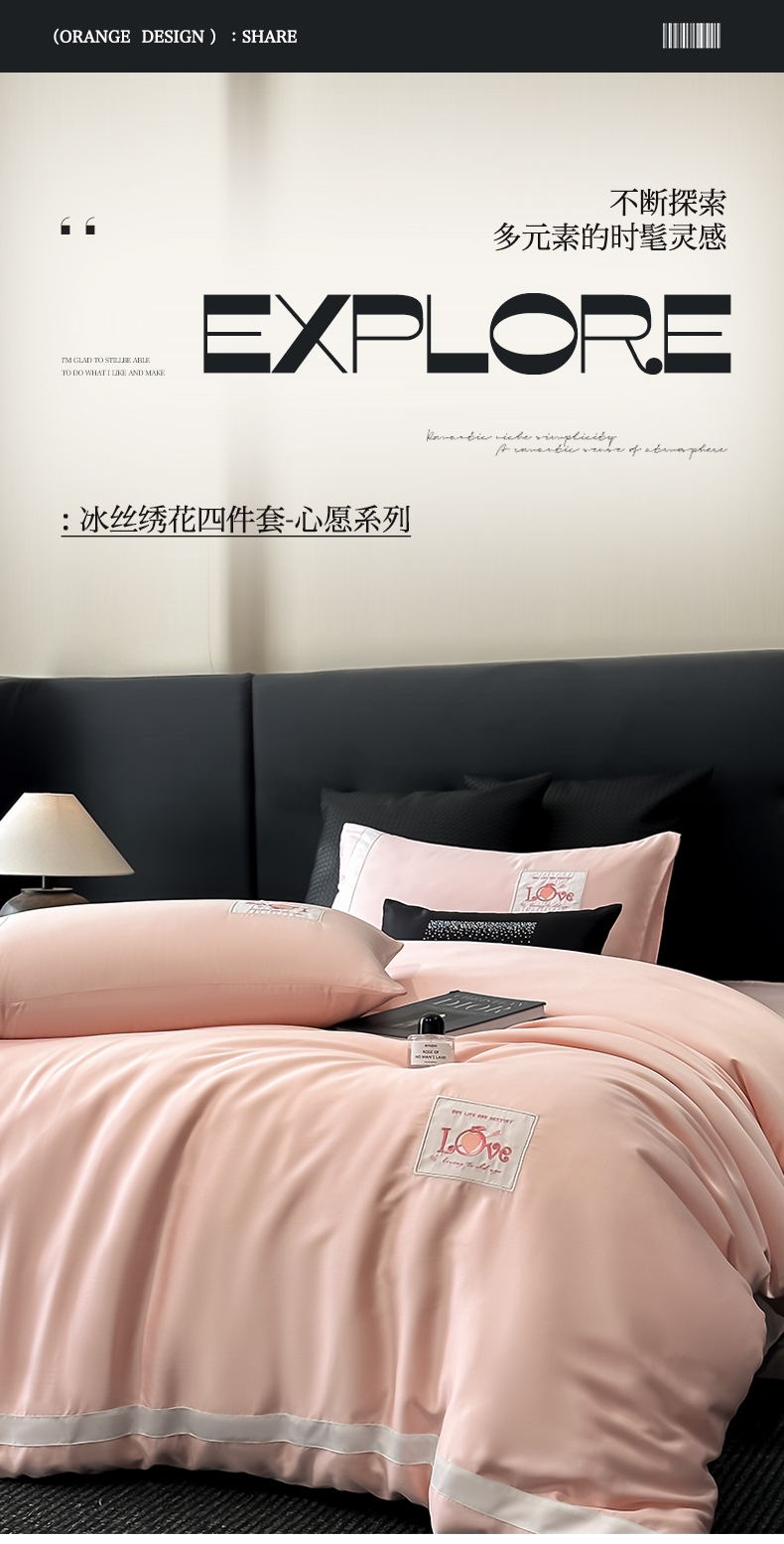 (总)金麦家纺 2025新款冰丝绣花四件套-心愿系列,心愿粉色,心愿燕麦奶,心愿天空蓝,心愿淡雅绿,心愿浅灰