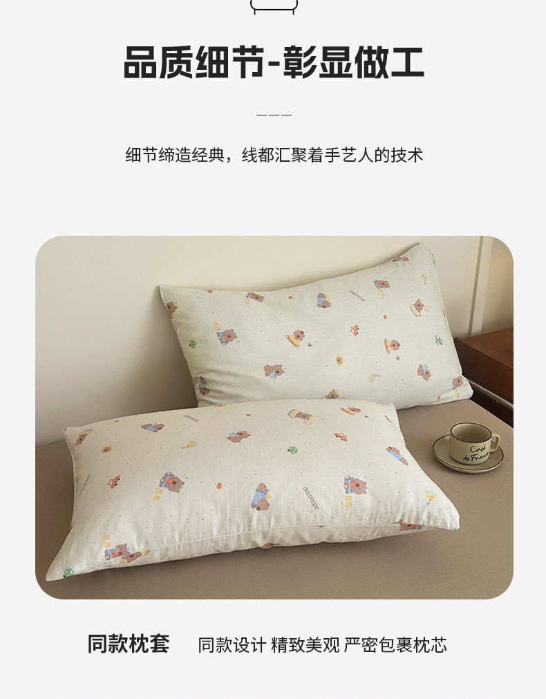 当前位置: 91家纺网 > 商品网购 > 床品套件 > 四件套 > 双层纱四件套 > 亿梵家居 2025新款A类母婴级有氧全棉纯棉双层纱纯棉印花四件套-床拍图 甜点小熊-米