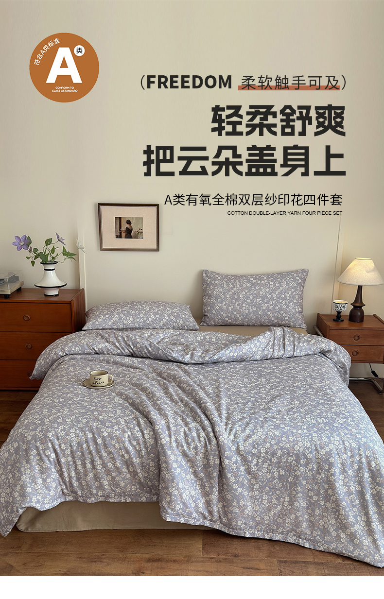 当前位置: 91家纺网 > 商品网购 > 床品套件 > 四件套 > 双层纱四件套 > 亿梵家居 2025新款A类母婴级有氧全棉纯棉双层纱纯棉印花四件套-叠拍图 弗拉-灰